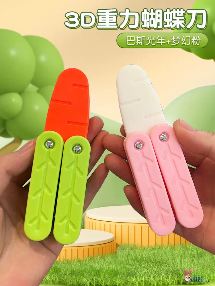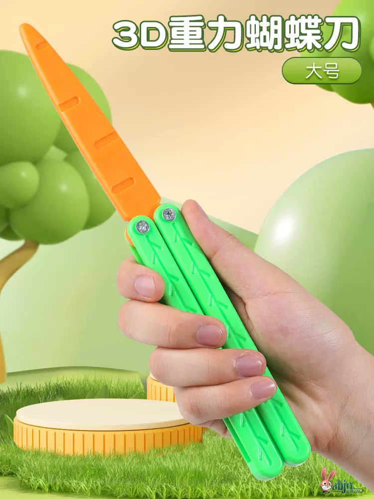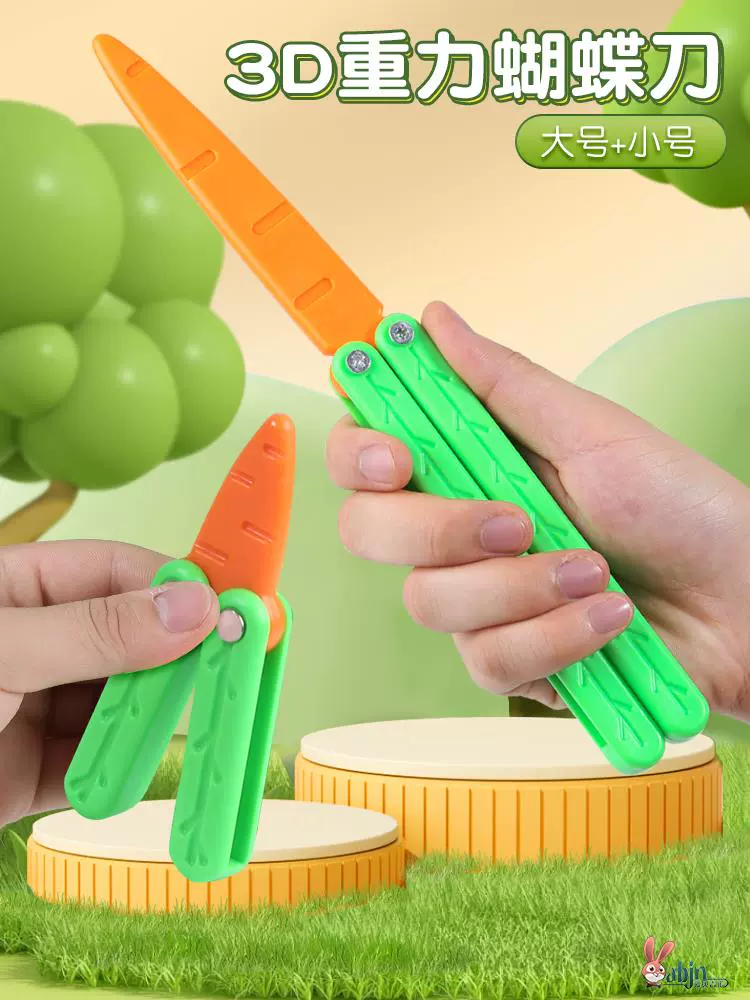 | nameOriginal | Butterfly Carrot Knife Folding Knife Toy Knife Carrot Butterfly Knife Plastic Gravity 3D Printed Carrot Knife Throwing Knife |
