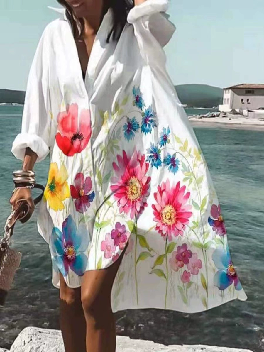 | nameOriginal | Butterfly cross-border V-neck loose dress sunflower |