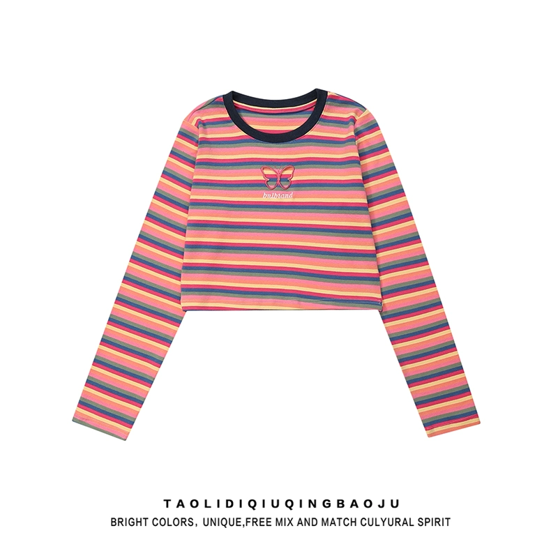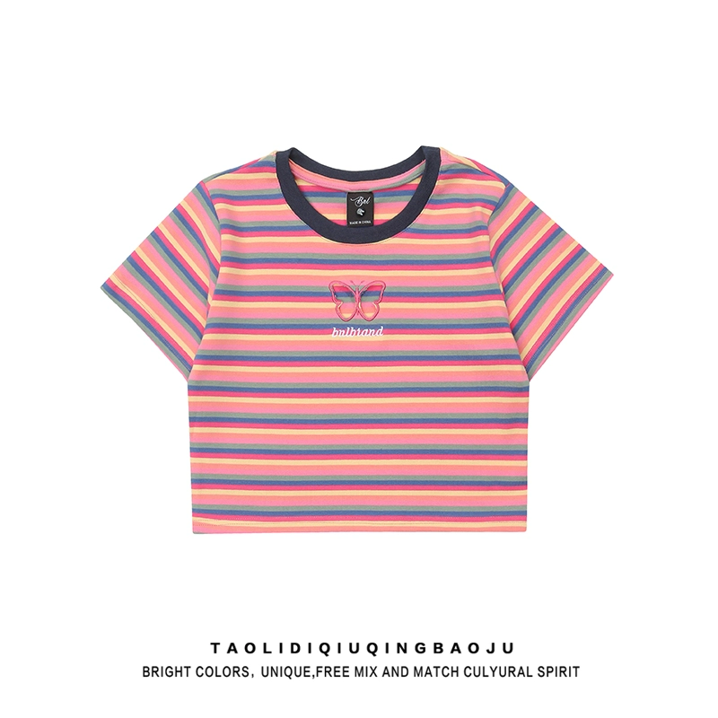 | nameOriginal | Butterfly cut-out striped slim-fitting right-shoulder short-sleeved top |