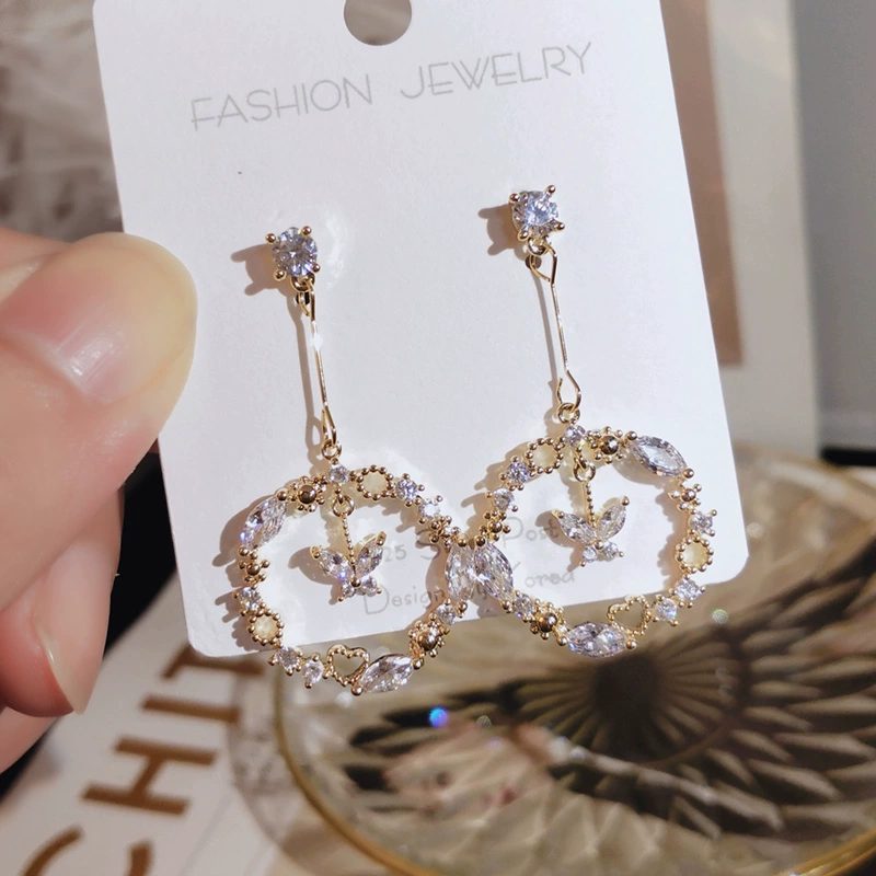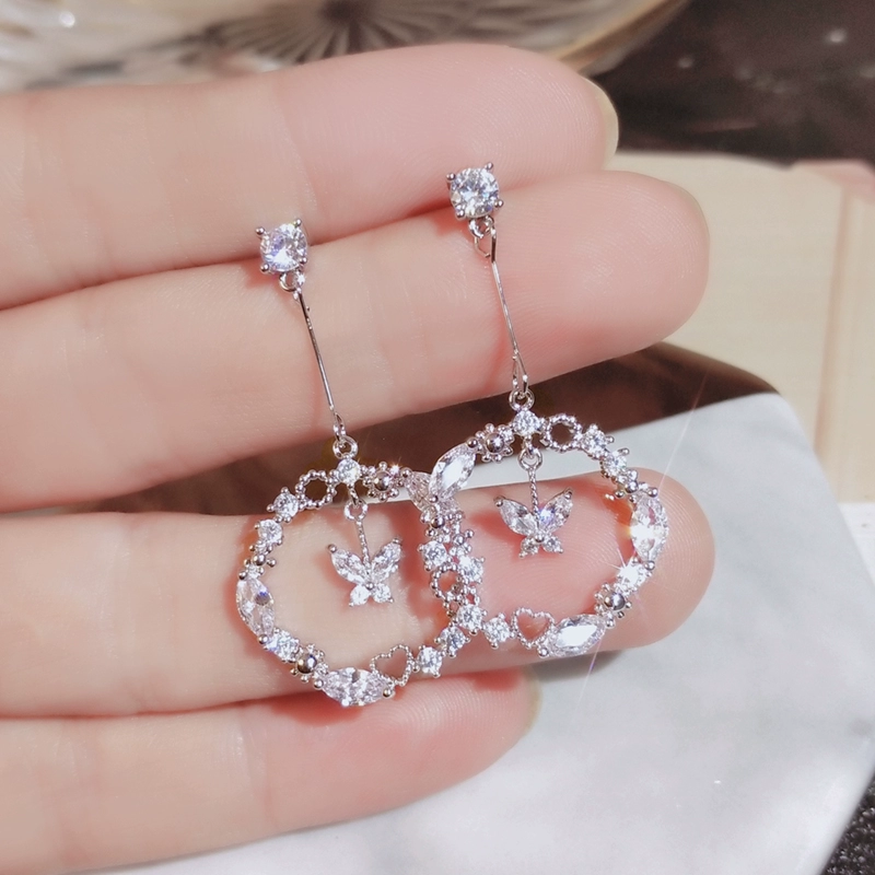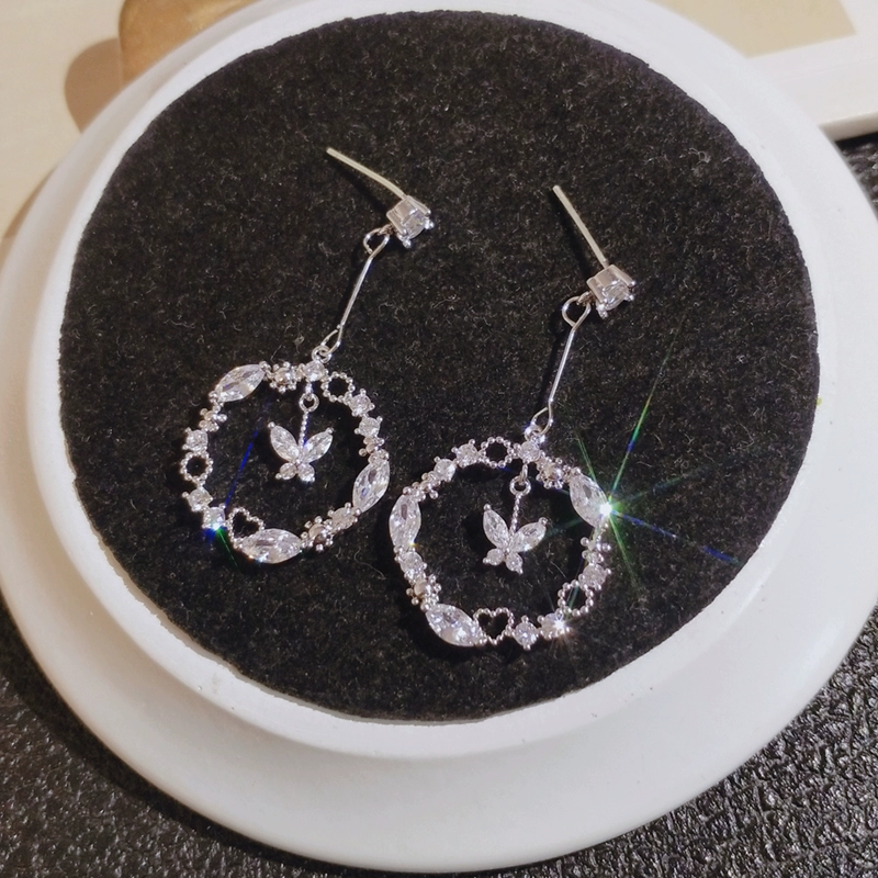 | nameOriginal | Butterfly ear clip without pierced women's long style Korean exaggerated large earrings for women silver needle zircon internet celebrity fashion earrings |