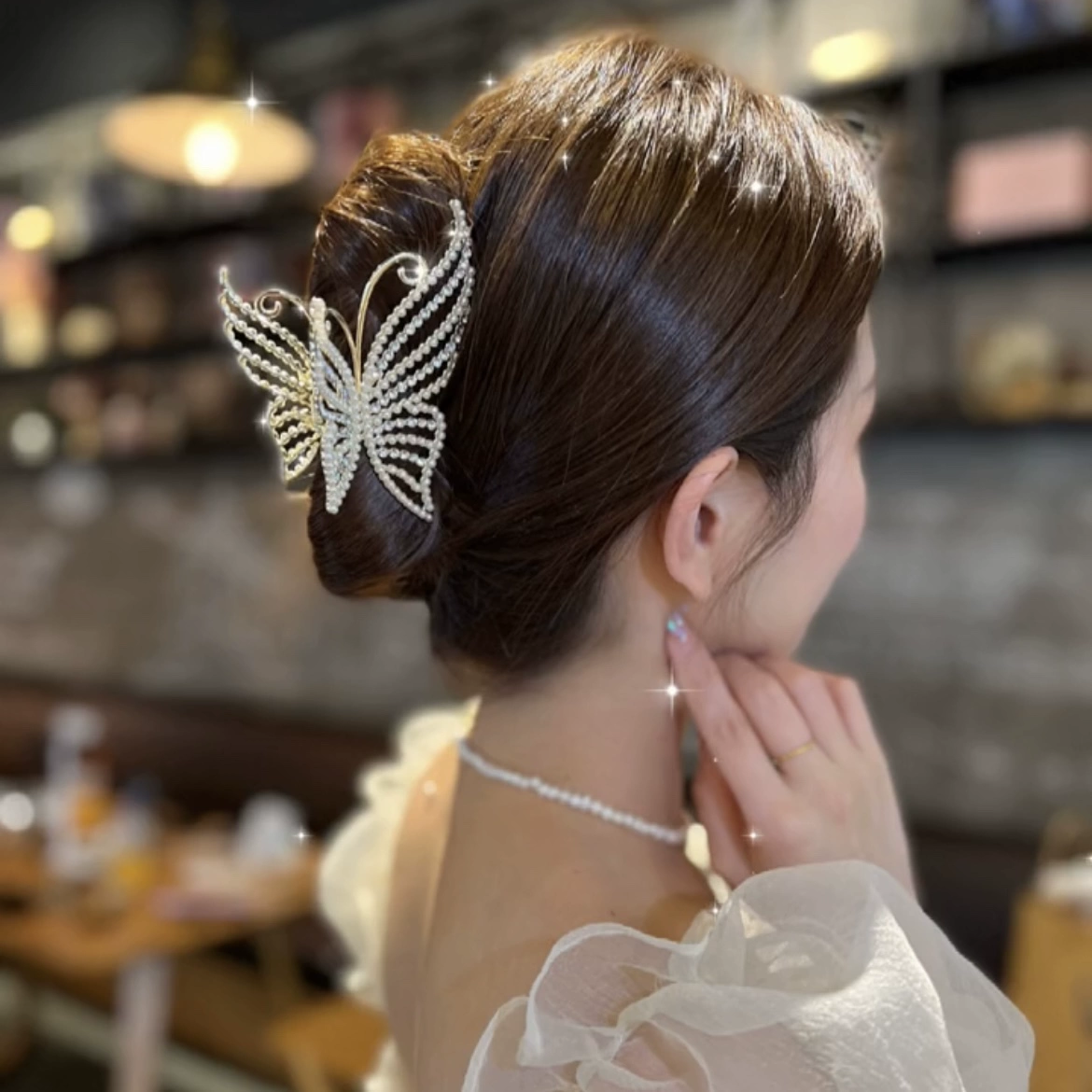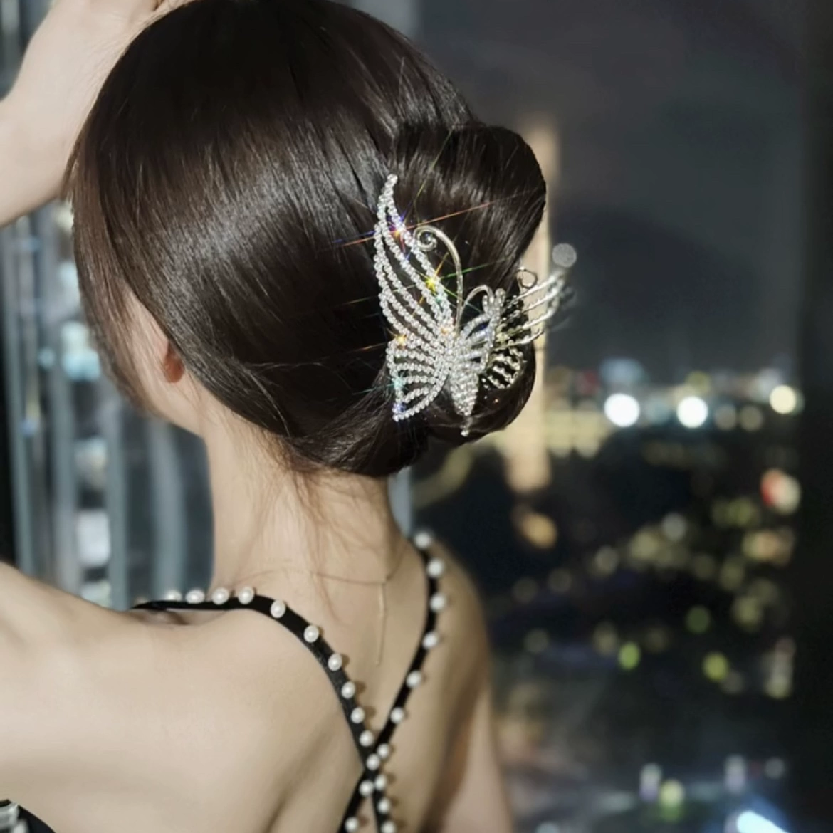 | nameOriginal | Butterfly high-end sparkling diamond hair clip metal pearls |