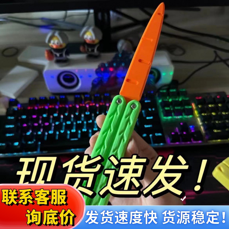 | nameOriginal | Butterfly Knife Carrot Knife Folding Knife Decompression Toy Shake Training Children Carrot Knife 3D Printing Luminous Knife |