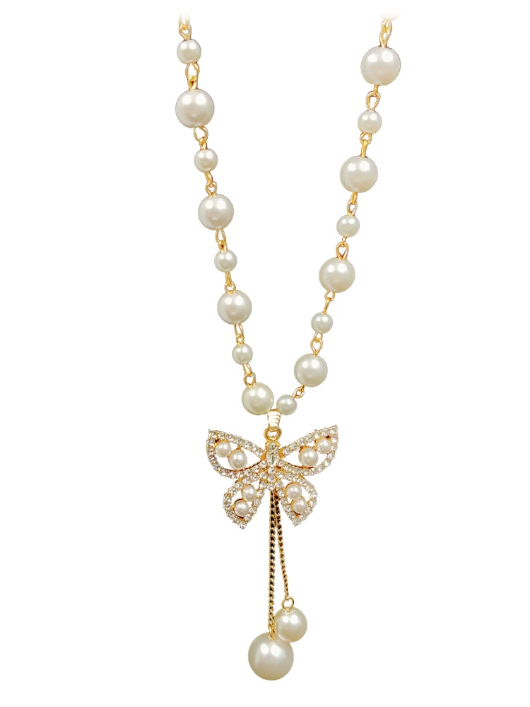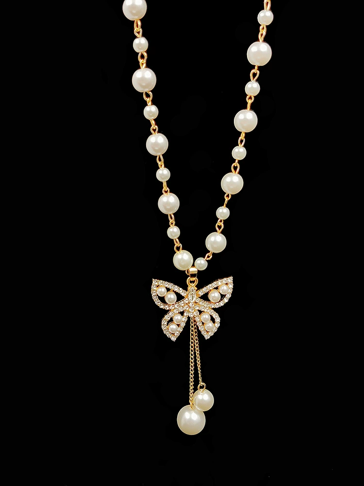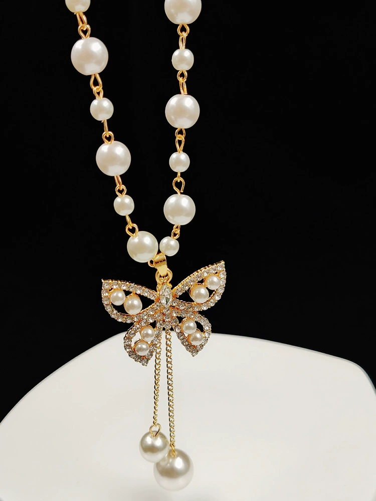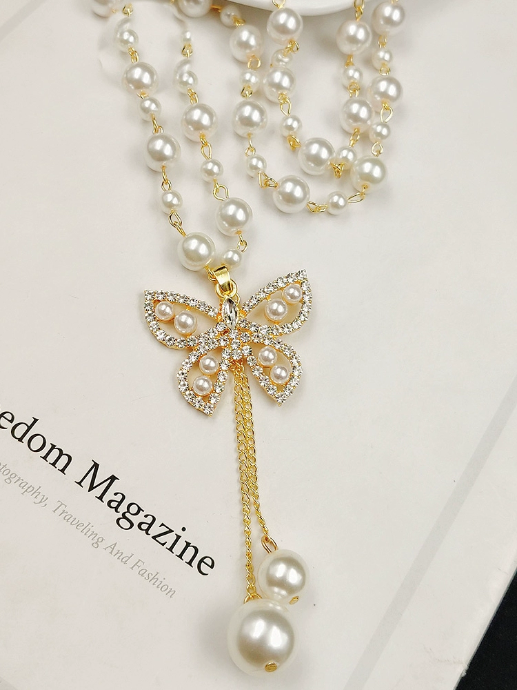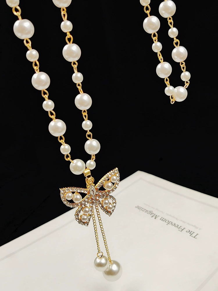 | nameOriginal | Butterfly Pearl Necklace Light Luxury Niche Design Sweater Chain 2024 New Hot Style Long Style Internet Celebrity Temperament Internet Celebrity |