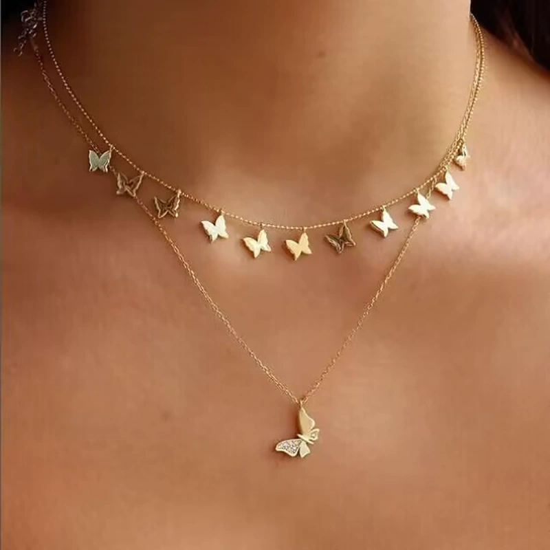 | nameOriginal | Butterfly pendant necklace Butterfly pendant multi-layer stacking necklace retro double-layer clavicle chain |