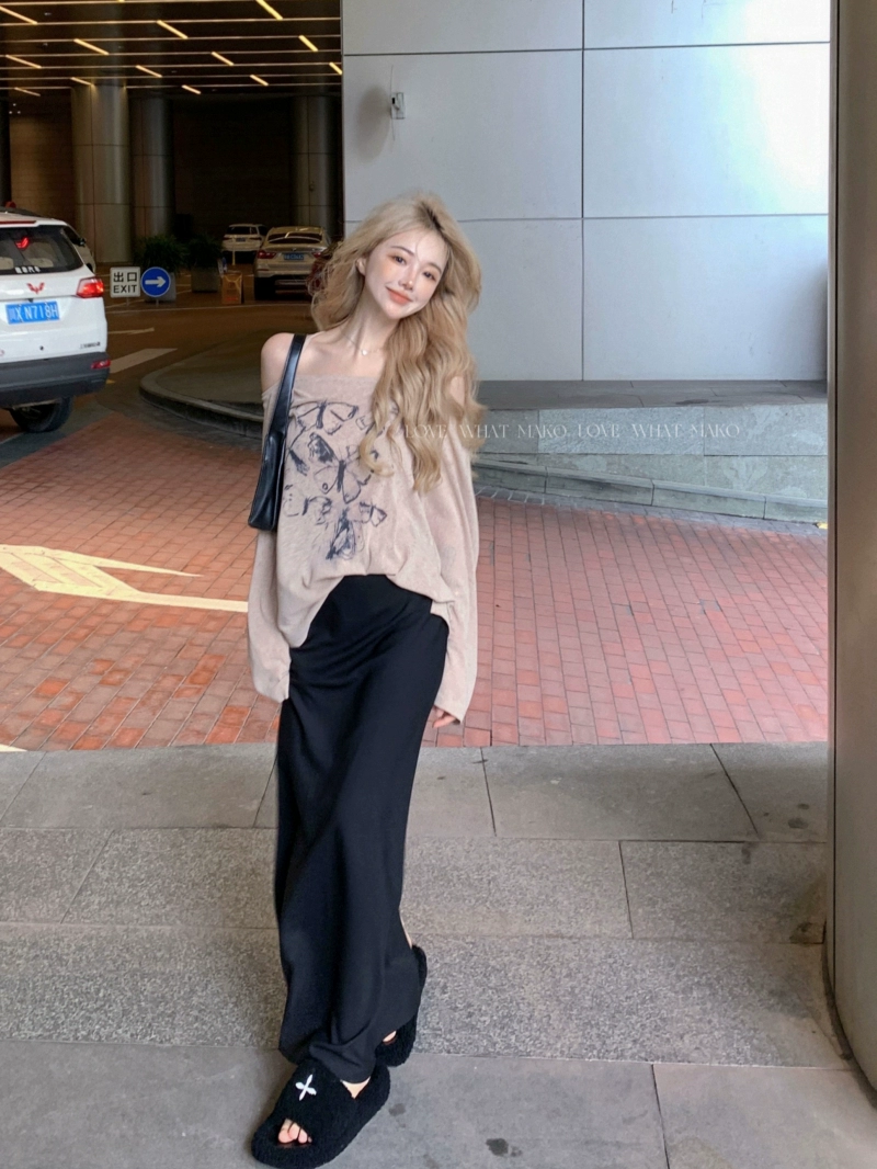 | nameOriginal | Butterfly print long-sleeved casual off-shoulder top with halter neck |