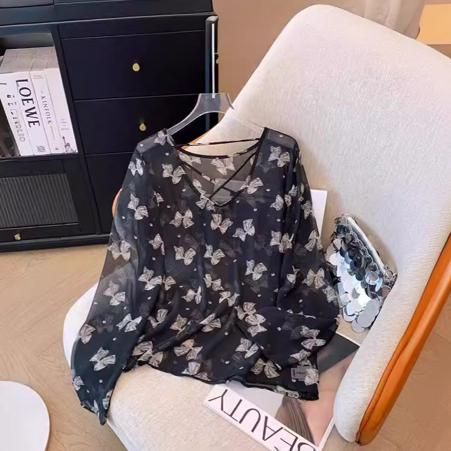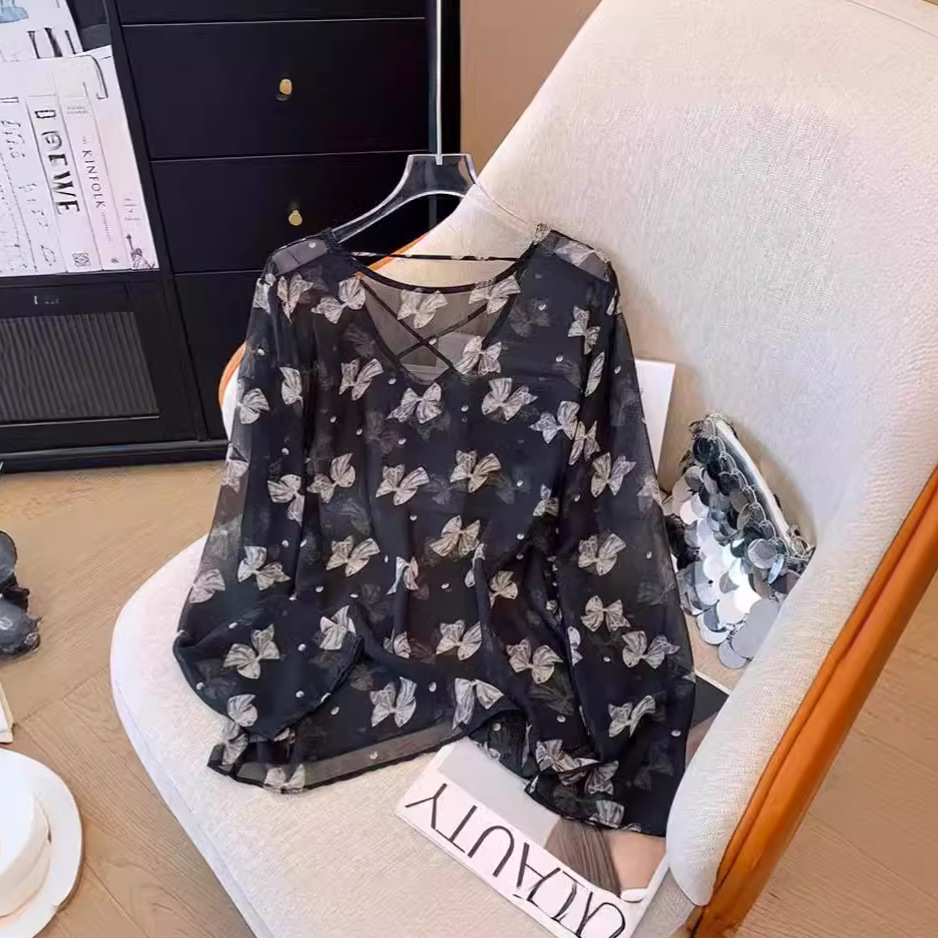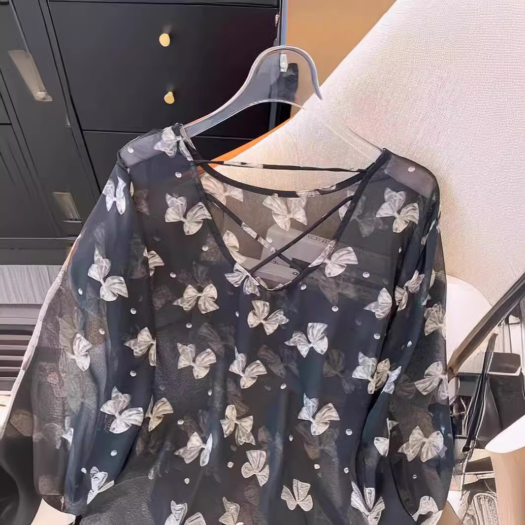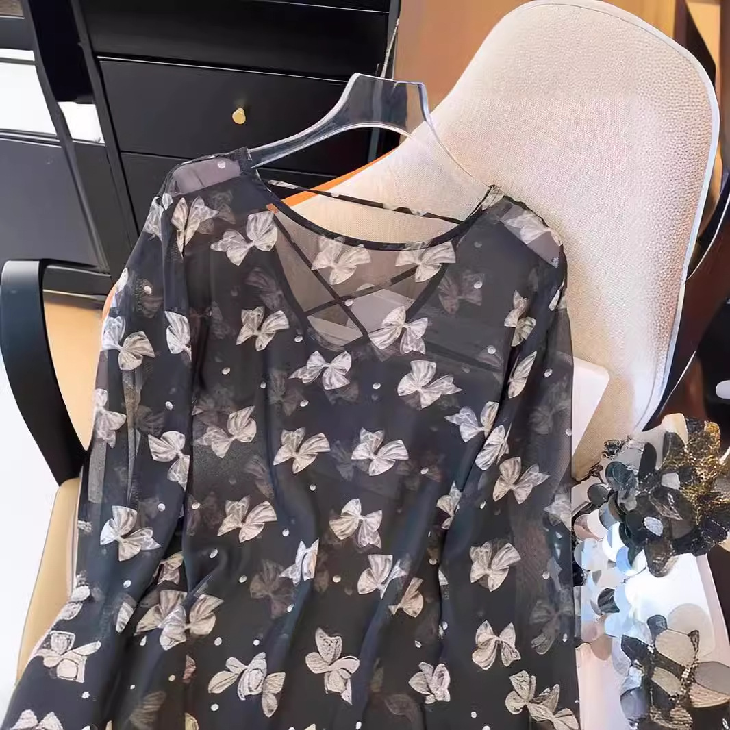 | nameOriginal | Butterfly Printed Chiffon Shirt Women's Short-sleeved Summer 2024 New Loose Sunscreen Top Stylist Age-reducing Shirt |