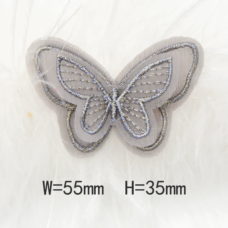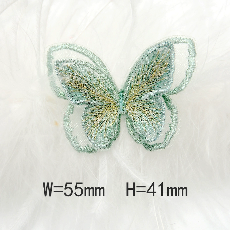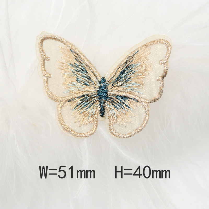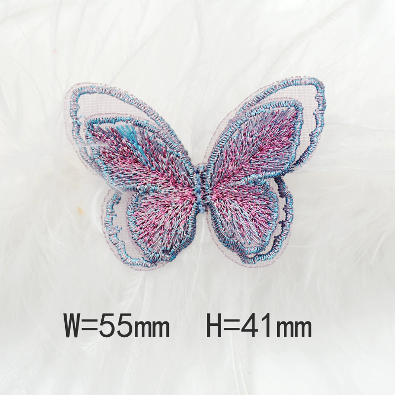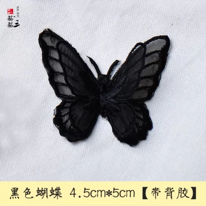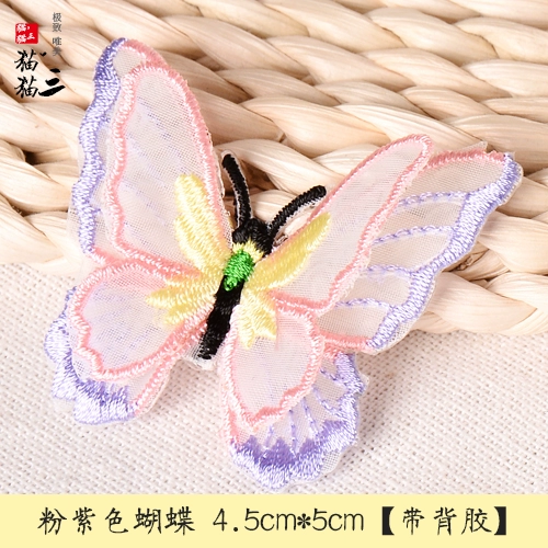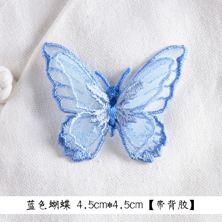 Butterfly three -layer double -layer European gauze embroidered clothing bag patch stickers DIY accessories back adhesive cloth sticker