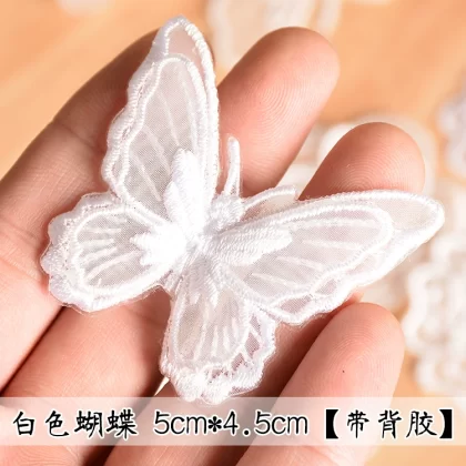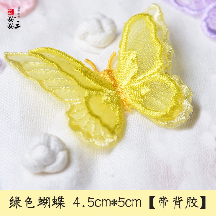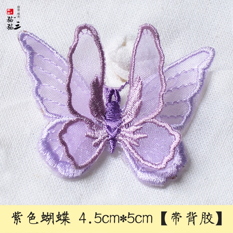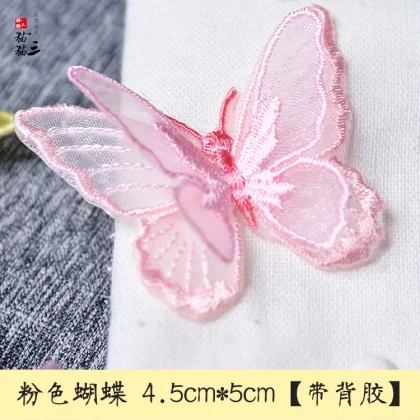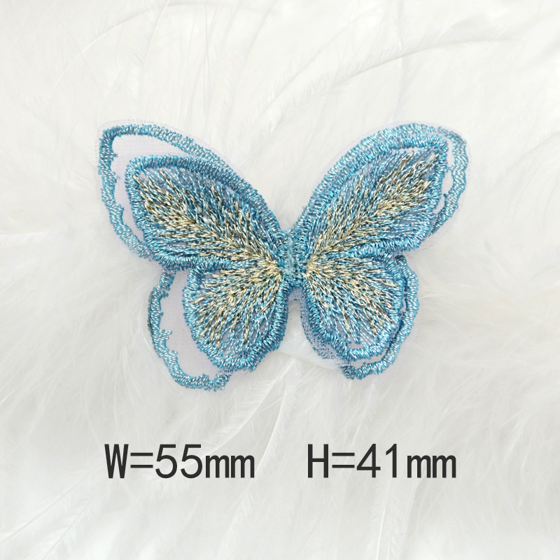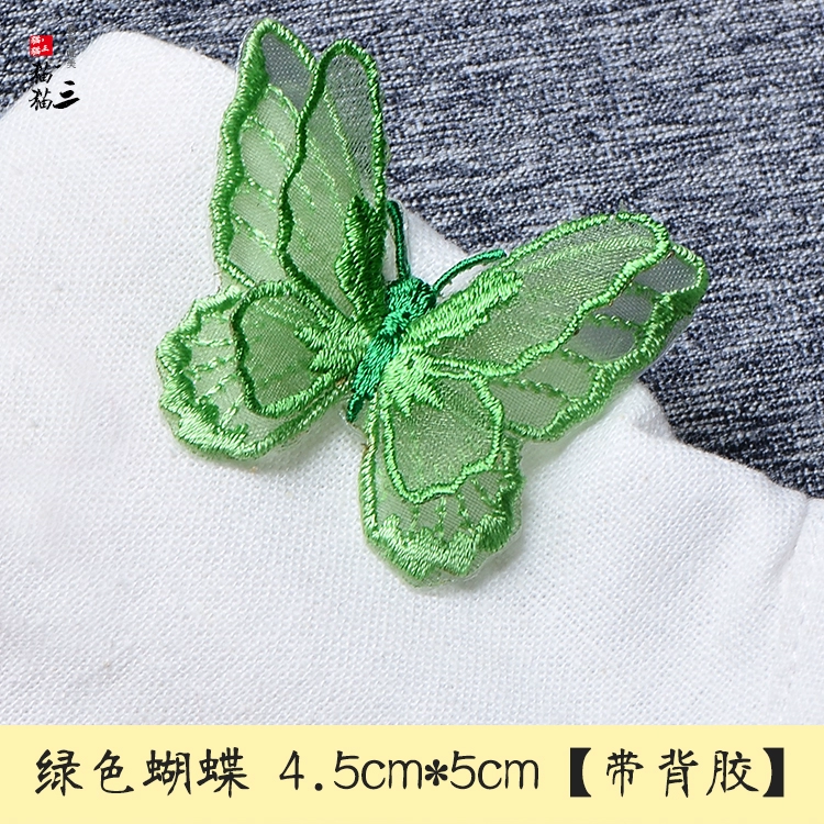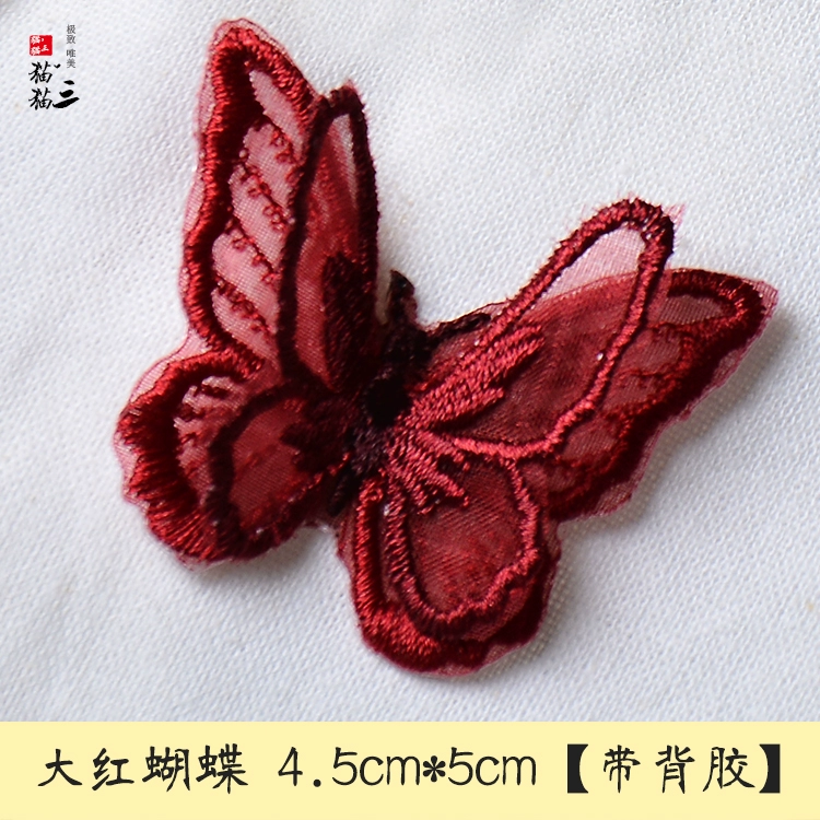 Butterfly three -layer double -layer European gauze embroidered clothing bag patch stickers DIY accessories back adhesive cloth sticker
