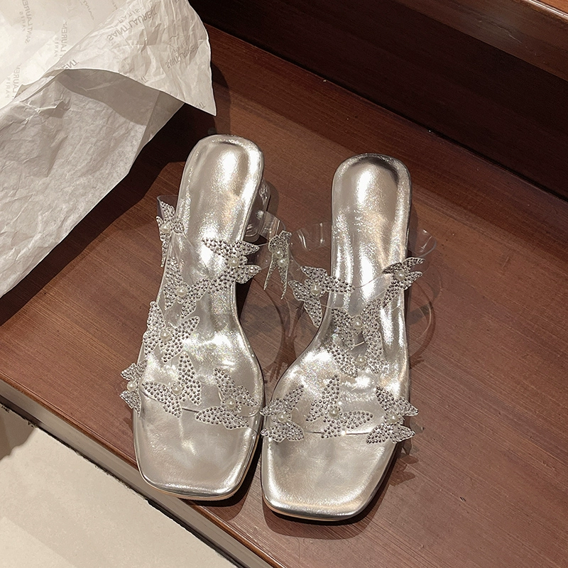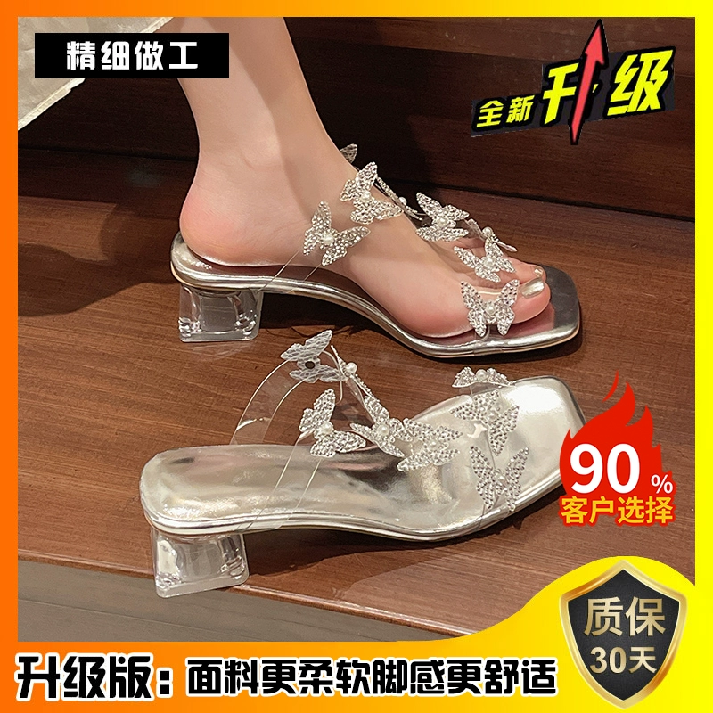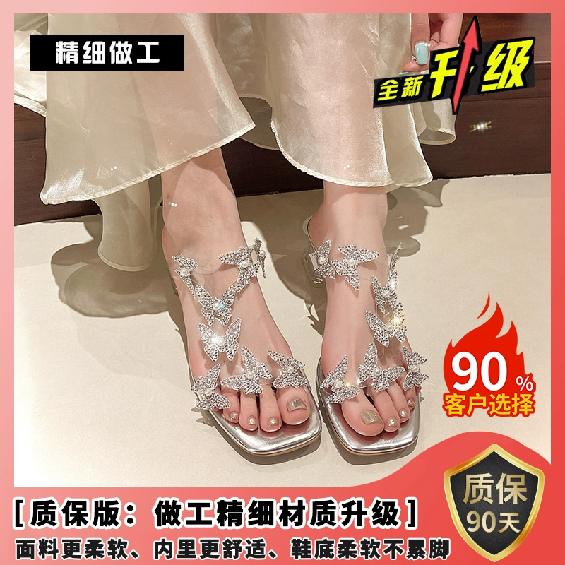 | nameOriginal | Butterfly transparent fairy style thick heel sandals with rhinestones |