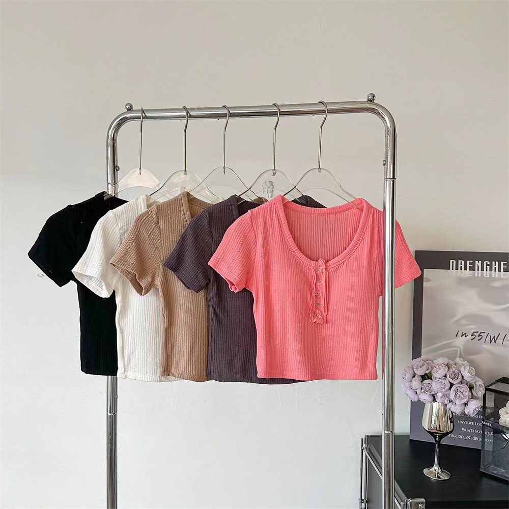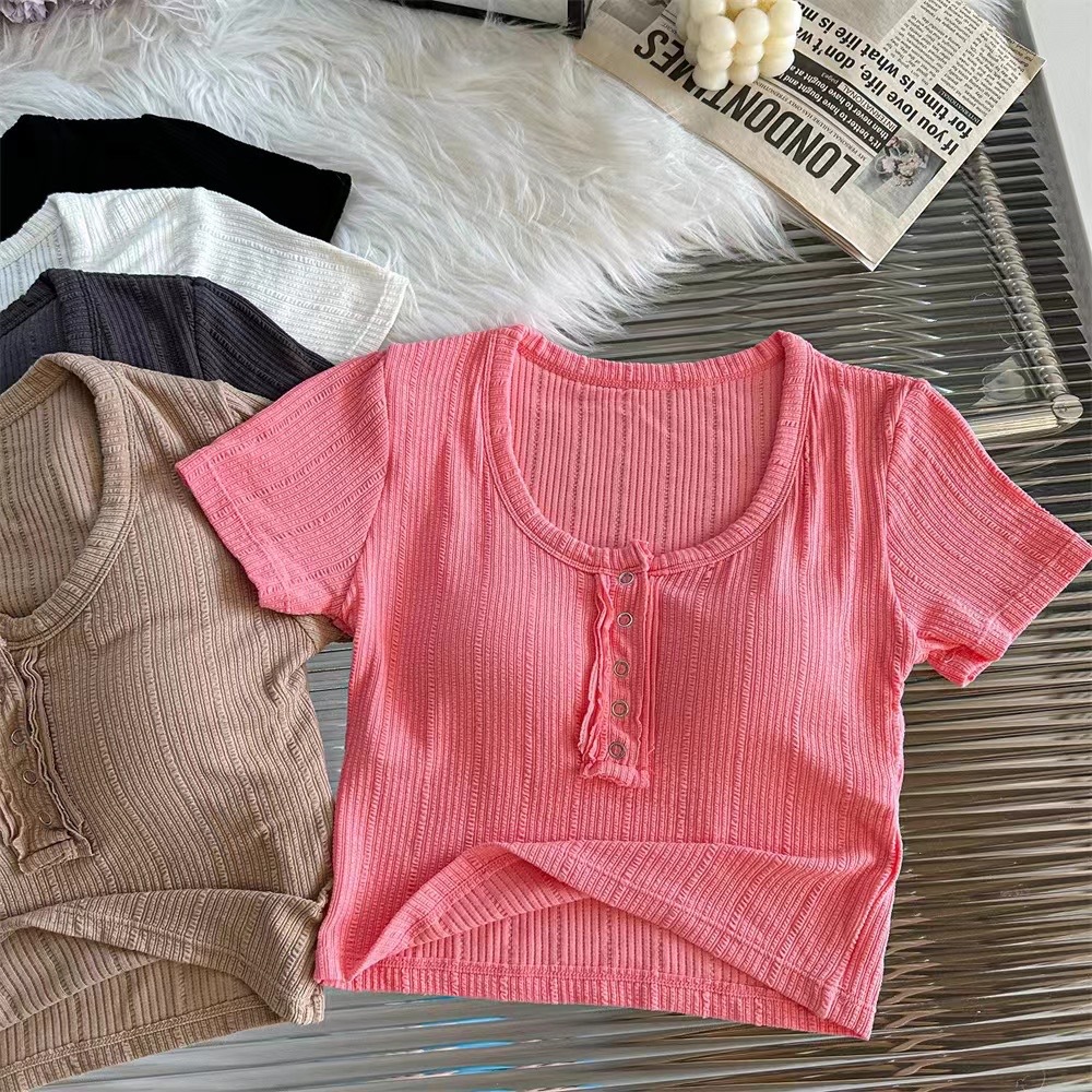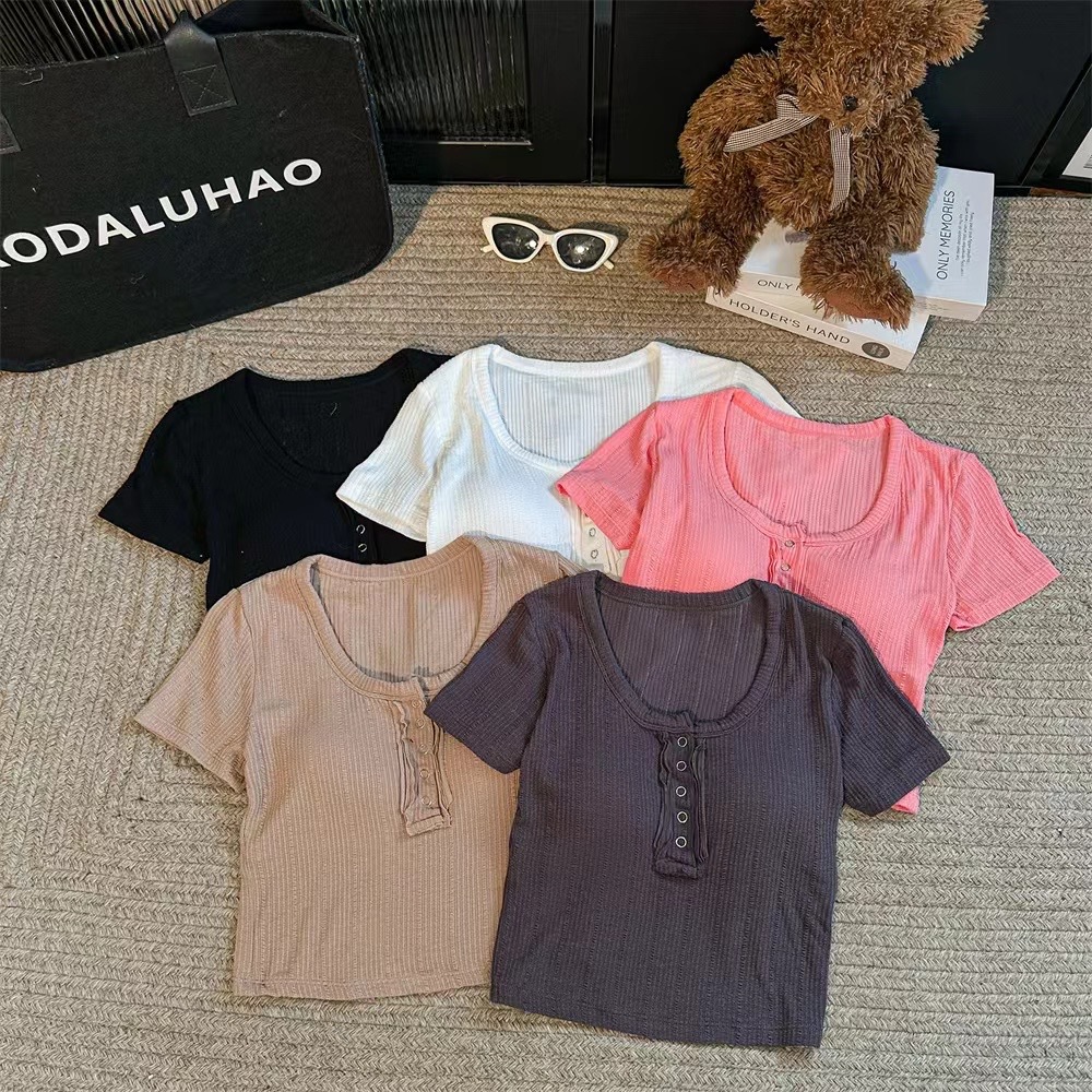 | nameOriginal | Button Design Sense Short-sleeved T-shirt Women's Short Cropped Top New 2024 Outer Wear Base Slim-fit Slim-fit Top |