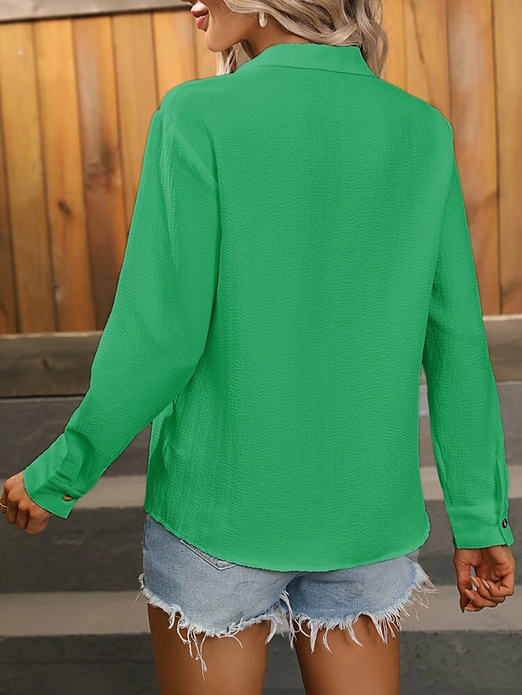 The Solid Button Front Shirt is a classic and versatile piece that belongs in every wardrobe. Made from high-quality materials, this shirt is designed to provide both comfort and style. The button front design adds a touch of sophistication, while the solid color makes it easy to pair with any outfit. Whether you’re dressing up for a formal occasion or keeping it casual for a weekend brunch, this shirt is the perfect choice. Its timeless design ensures that it will remain a staple in your wardrobe for years to come.