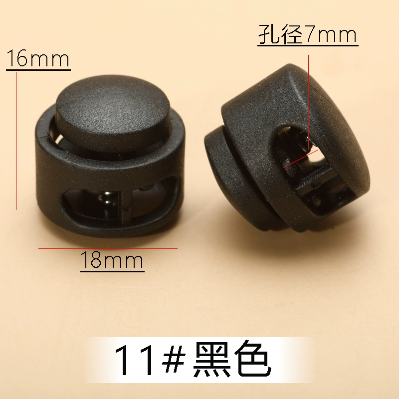 Buttons, black and white spring buckles, adjustable clothes tightening buckles, plastic buckles, hanging clocks, rope buckles, fixed rope pig nose buckles