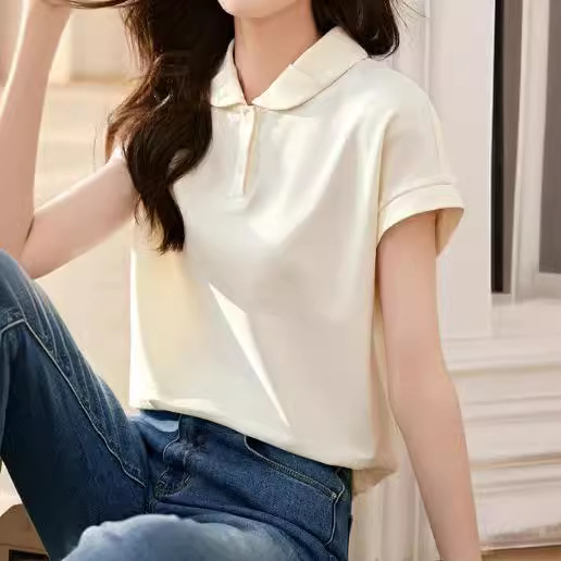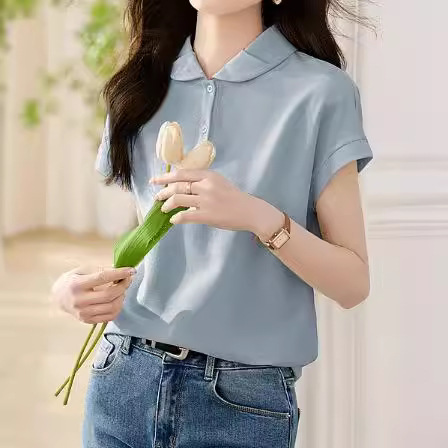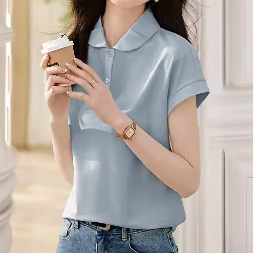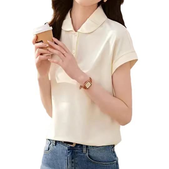 | nameOriginal | Buttons Pleated Age-reducing Small Lapel Doll Collar Elegant POLO Collar Shirt Collar T-shirt Women's 2024 Summer New |