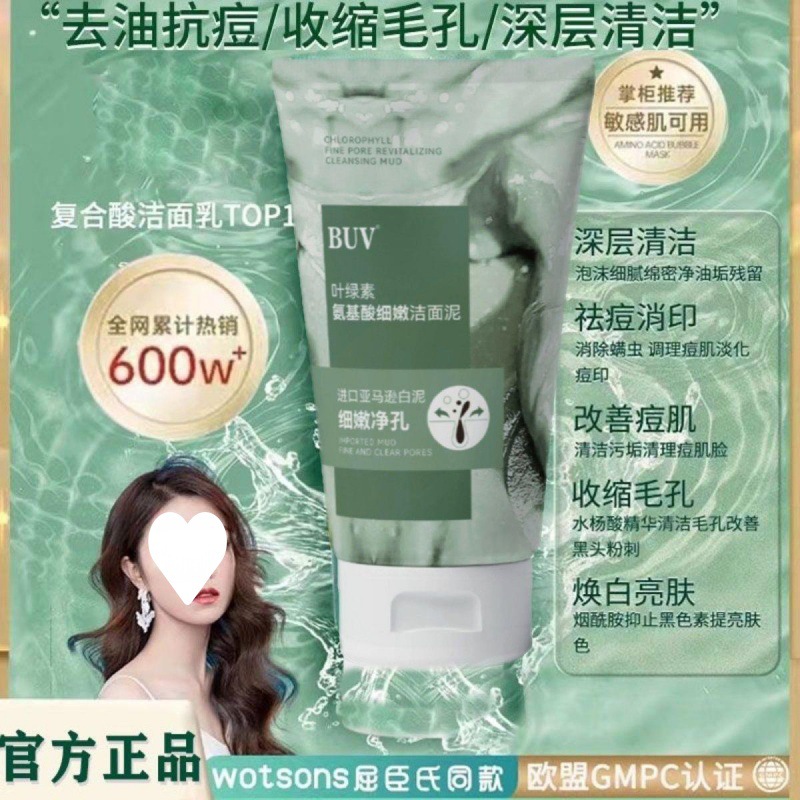 | nameOriginal | BUV chlorophyll amino acid facial cleansing mud Amazon white mud pore cleansing milk shrink pores |