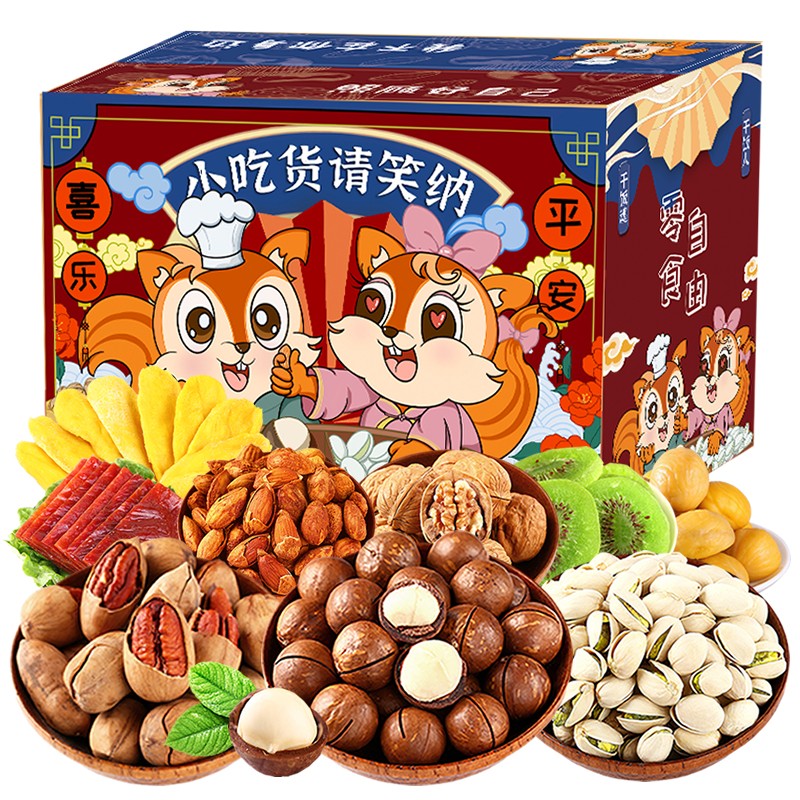 | nameOriginal | [Buy one box and get one box free] Internet celebrity mixed New Year shopping festival Squirrel nut gift bag pregnant women and children healthy snacks |