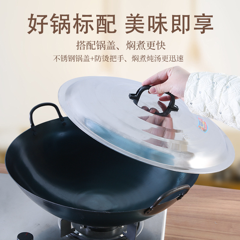 | nameOriginal | BX62 commercial old-fashioned thickened non-coated double-ear wrought iron large iron pan household non-stick pan firewood stove gas stove |