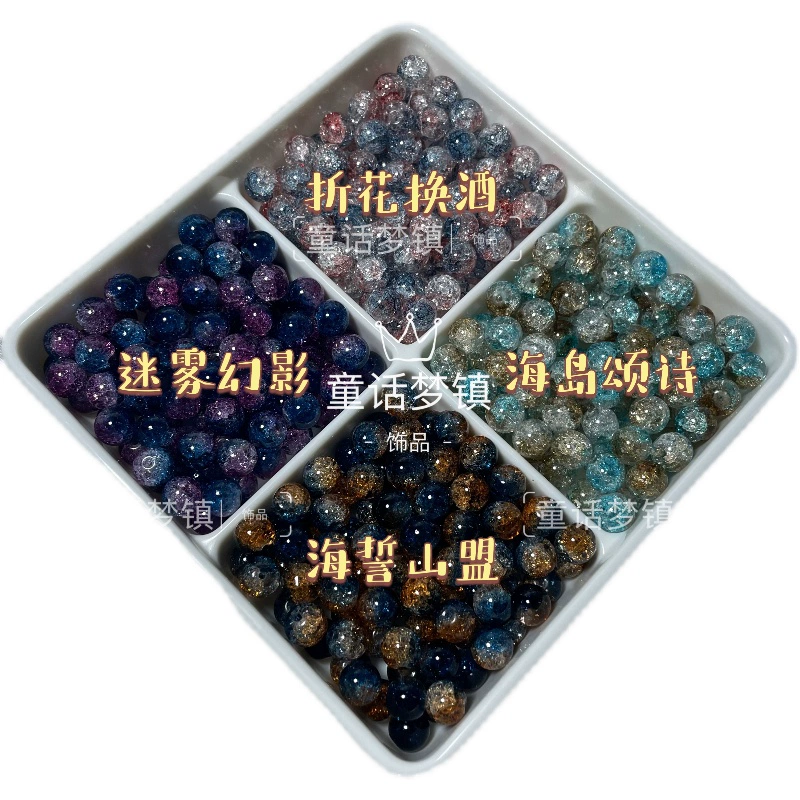 C 10mm transparent broken gradient two-color round beads handmade diy bracelet bracelet necklace loose beads fairy jewelry material