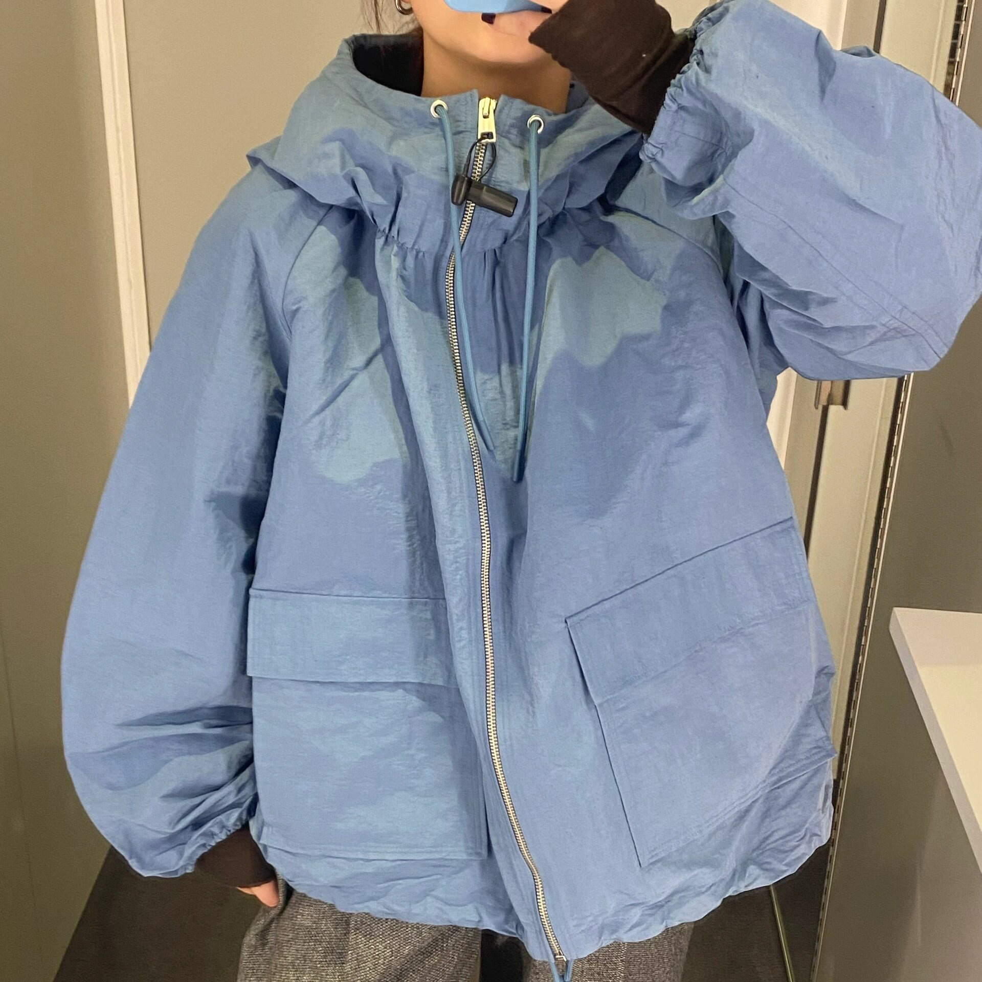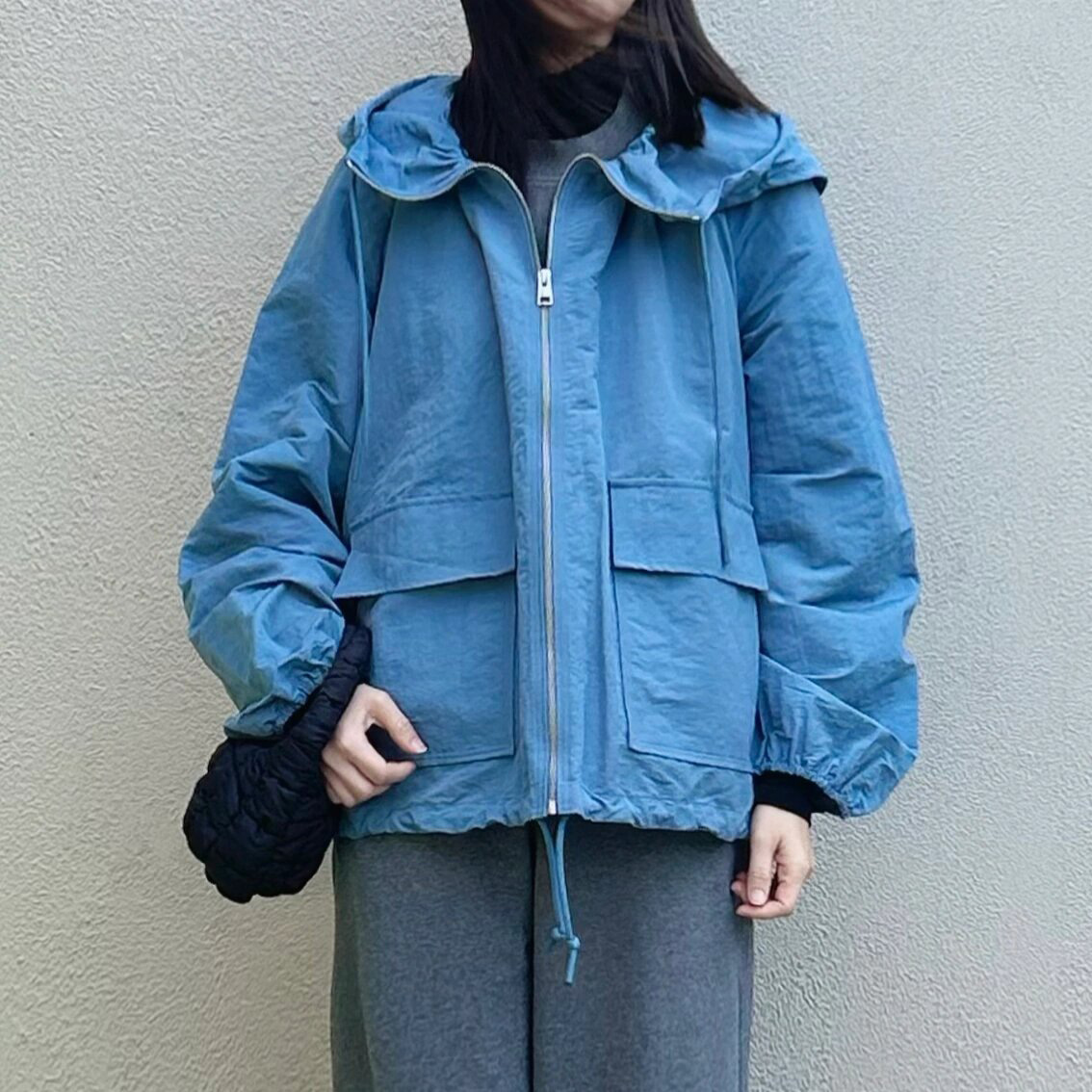 C casual style short linen blend hooded jacket blue coat 24 spring new 1217185001