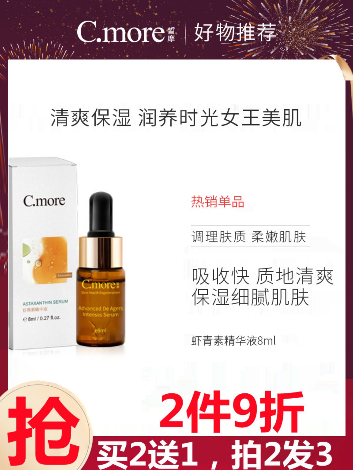 | nameOriginal | C.more Astaxanthin Essence Hydrates, Moisturizes, Brightens Skin, Diminishes Fine Lines, and Firms Skin for Female Students |