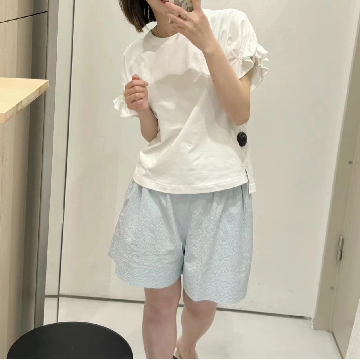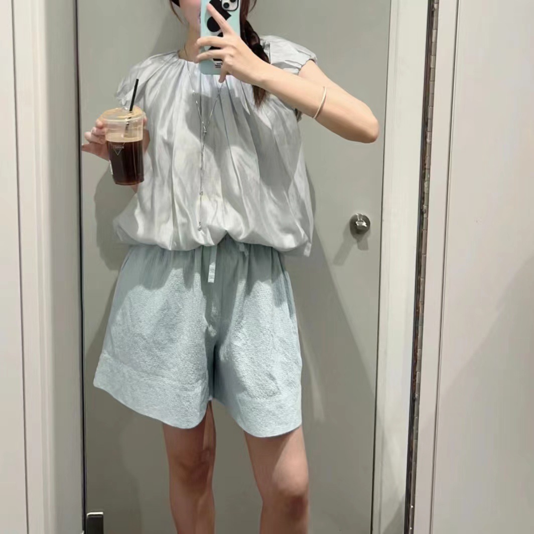 C * S women's 2024 summer new standard straight pants waist seersucker shorts 1244760001