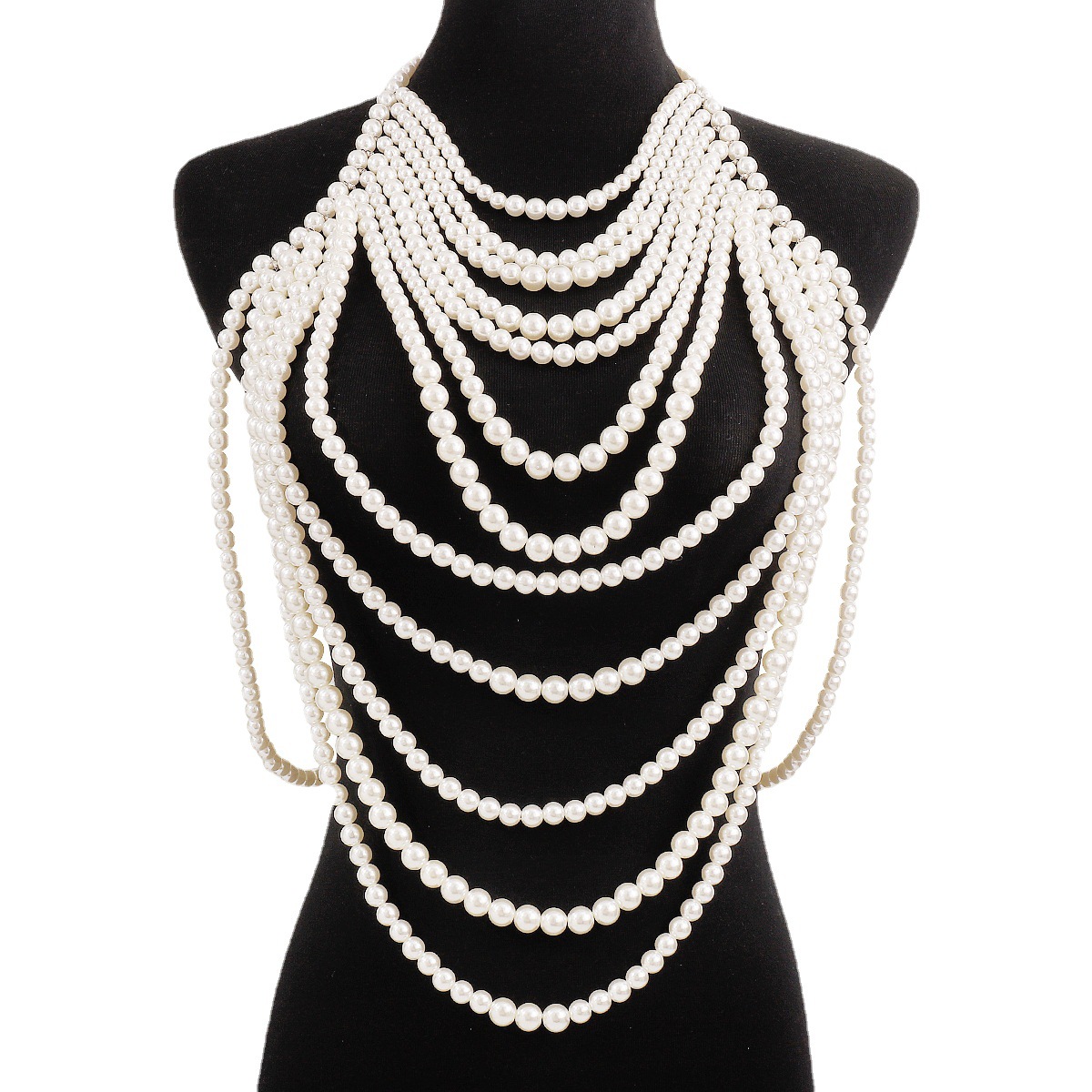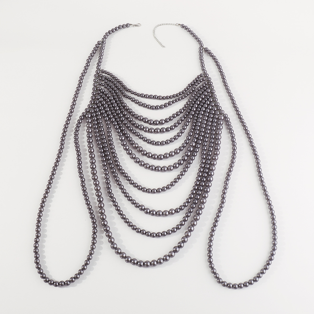 C0429 European and American Exaggerated Heavy Industry Geometric Pearl Body Chain Personality Retro Creative Fashionable Irregular Chest Decoration