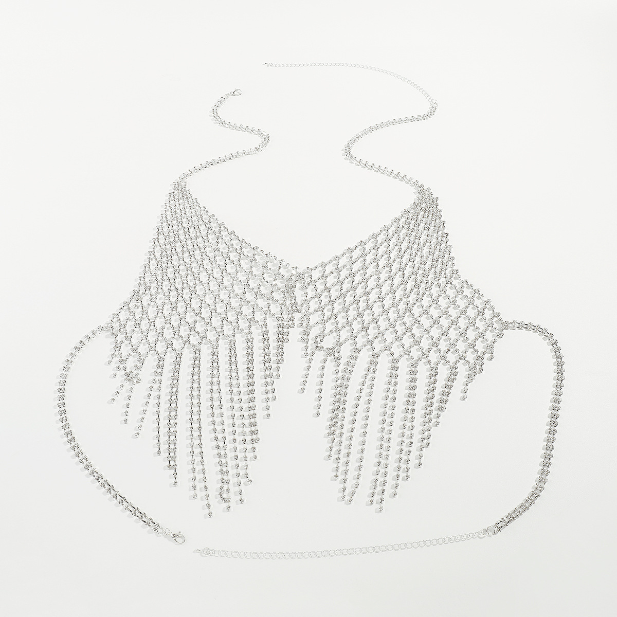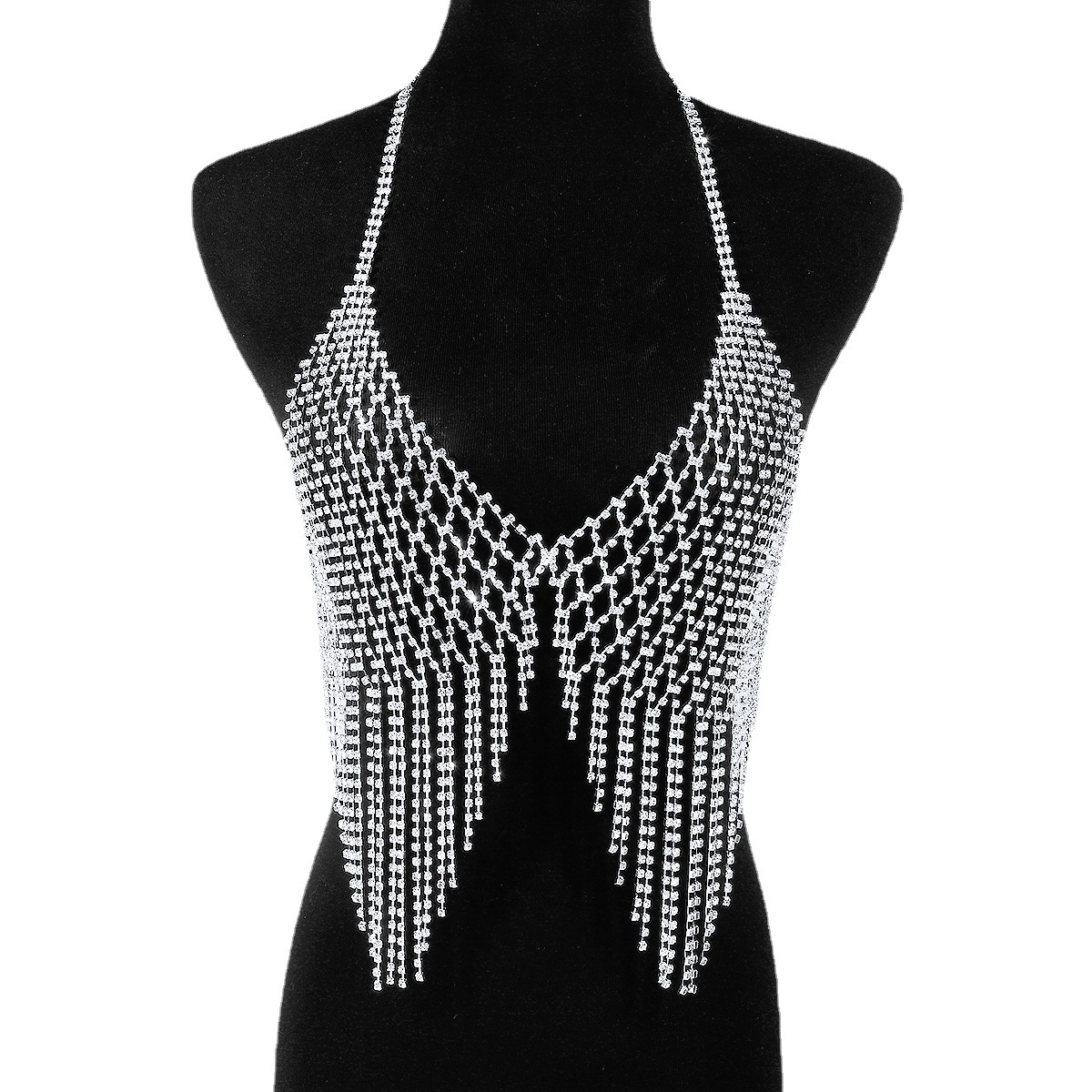 | nameOriginal | C0614 European and American Grid Tassel Body Chain Cross-border Simple Exaggerated Sexy Spice Girl Flash Diamond Breast Chain Bikini Women |