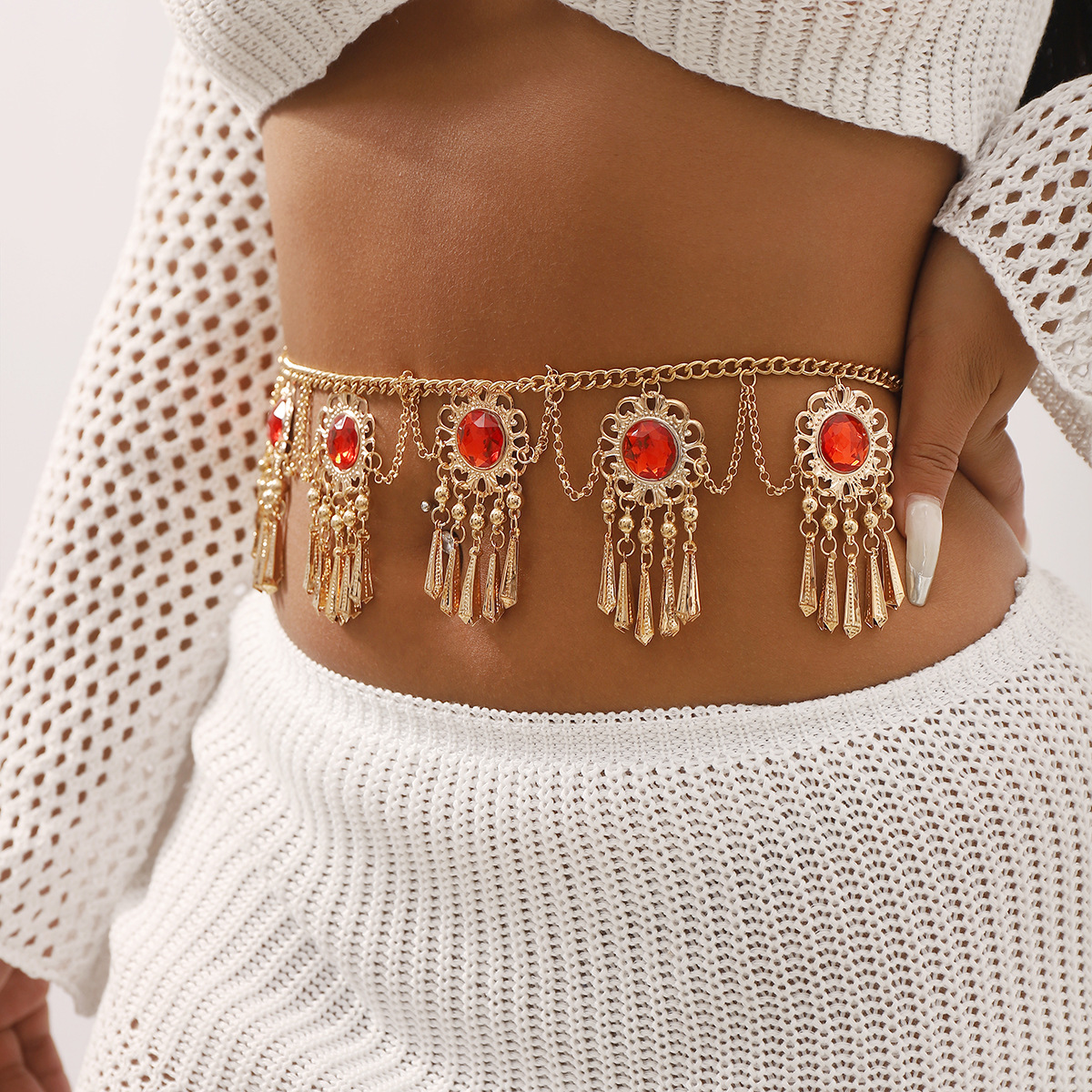 C0638 European and American New Retro Tassel Zircon Waist Chain Bohemian Dance All-match Metal Waist Accessories