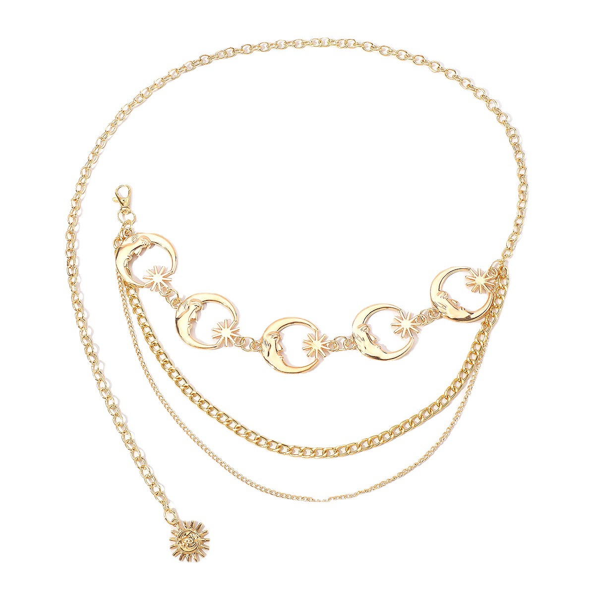 | nameOriginal | C0641 European and American Style Fashion Hip Hop Hot Girls Adjustable Body Chain Accessories Personalized Atmospheric Crescent Sun Waist Chain |