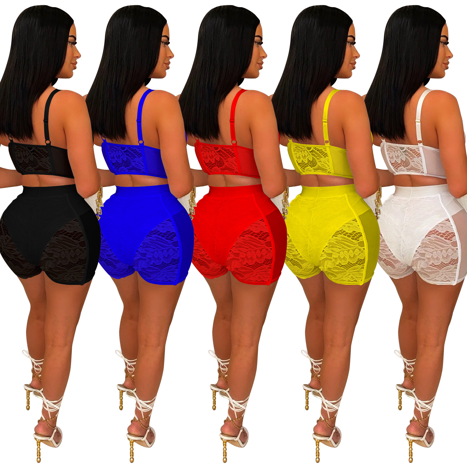| nameOriginal | C6658 Cross-border AliExpress Amazon European and American Fashion Women's Solid Color Sexy Lace Sleeveless Shorts Two-piece Set |