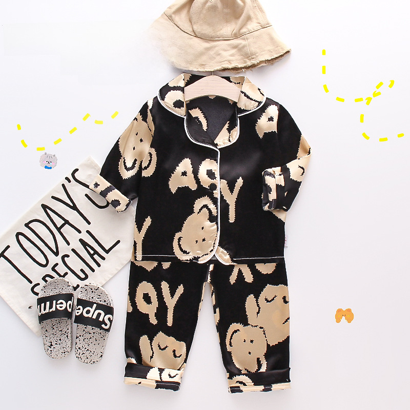 | nameOriginal | CA76 Spring and Autumn new children's home clothes comfortable meals single-breasted black bear pajamas two-piece Korean style fashionable style |