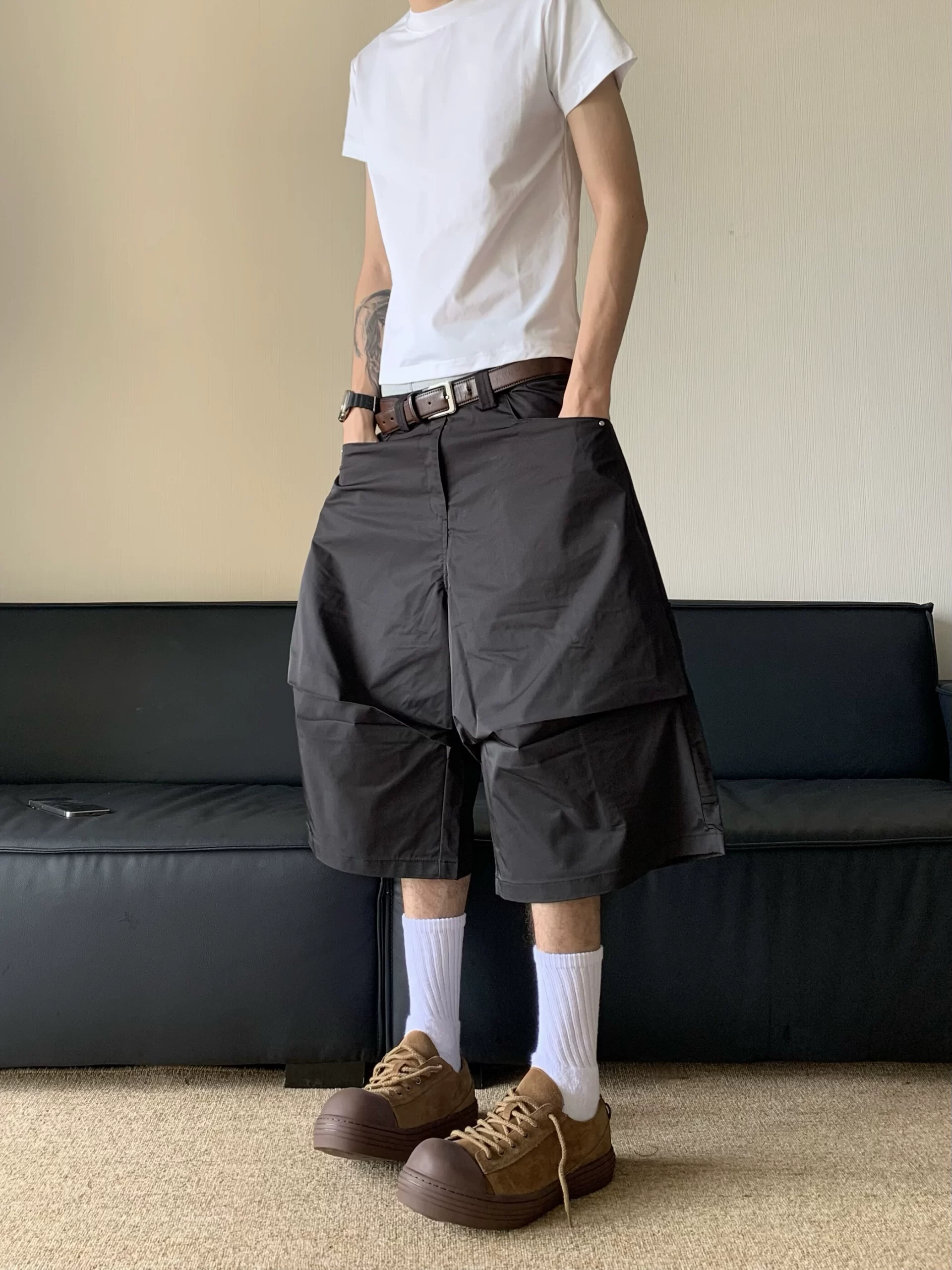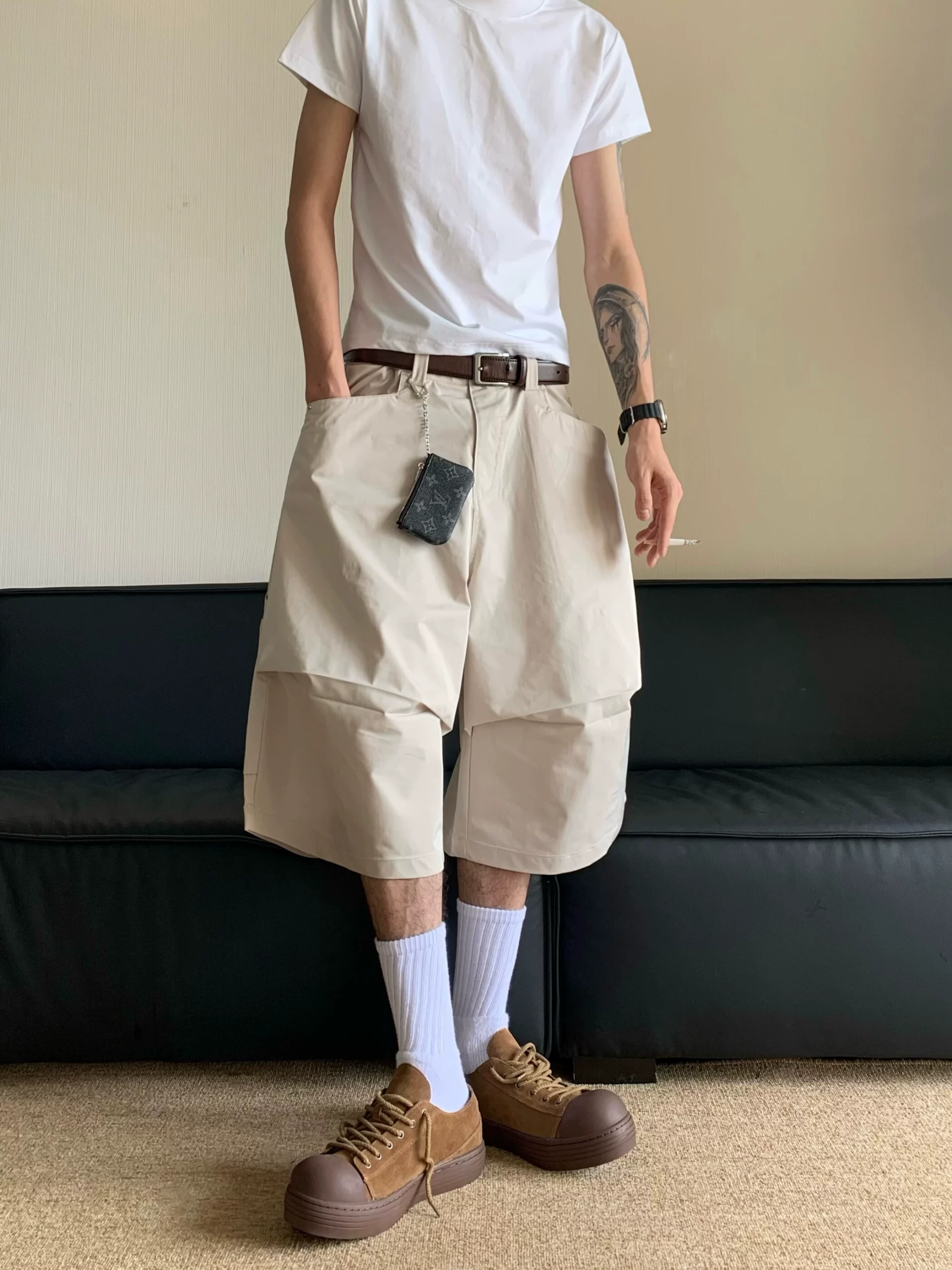 | nameOriginal | Cabbage coke American retro pleated workwear scimitar shorts men's casual loose pants wide-leg logging cropped pants |