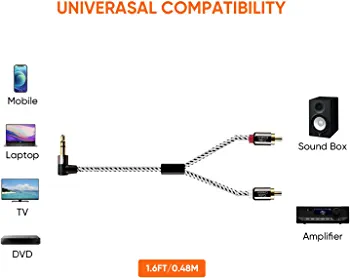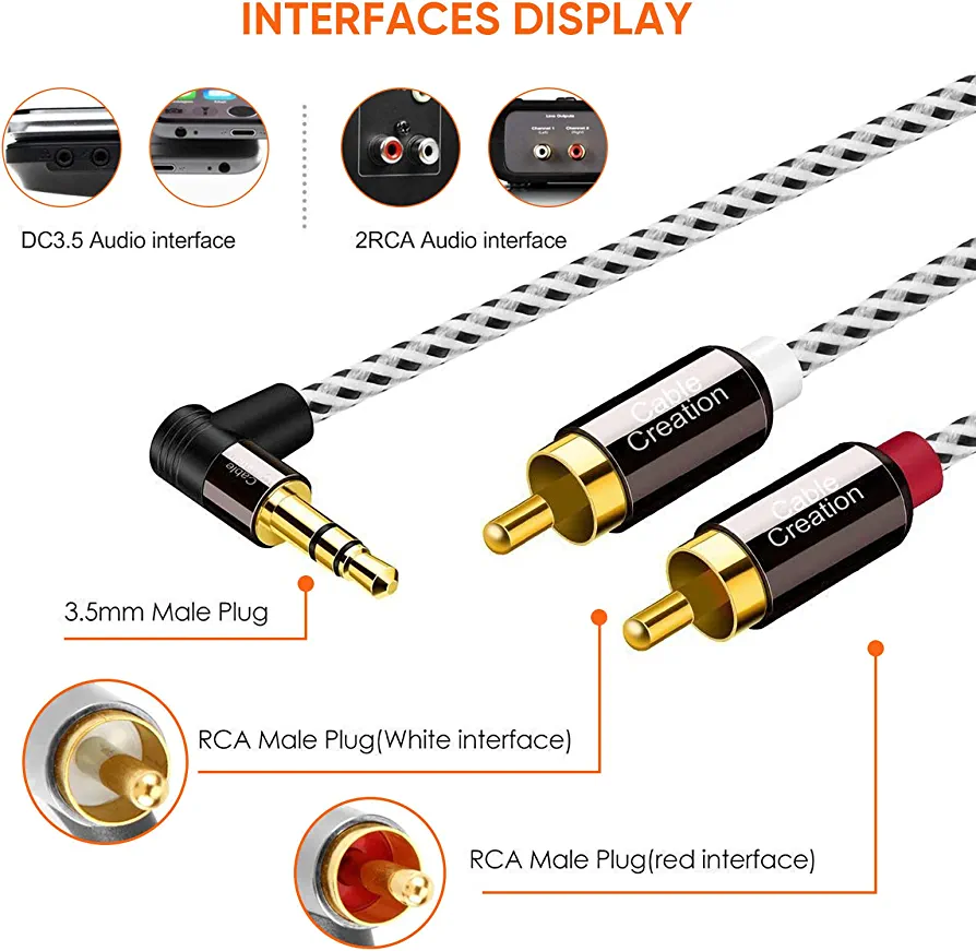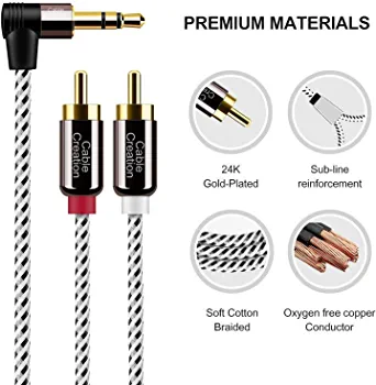 | nameOriginal | 3.5mm to RCA Cable,CableCreation 3 Feet Angle 3.5mm Male to 2RCA Male Auxiliary Stereo Audio Y Splitter Gold-Plated for Smartphones, MP3, Tablets, Speakers,Home Theater,HDTV,1m |