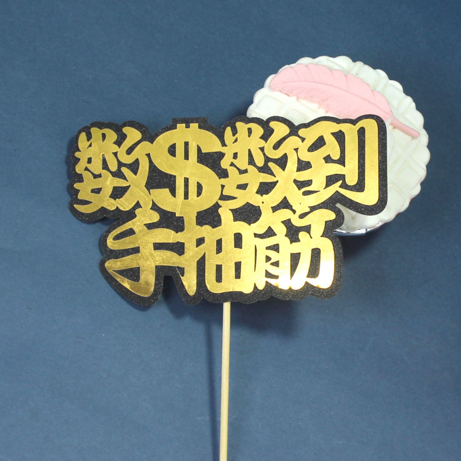 | nameOriginal | Cake decoration card counting money to hand cramp Black Gold series shining high cold air series flag insert |