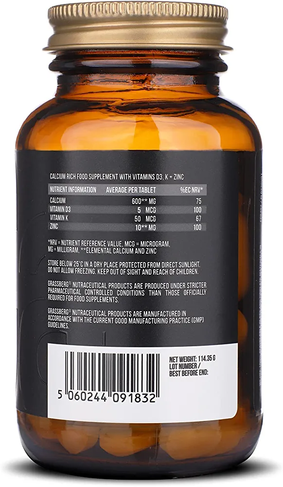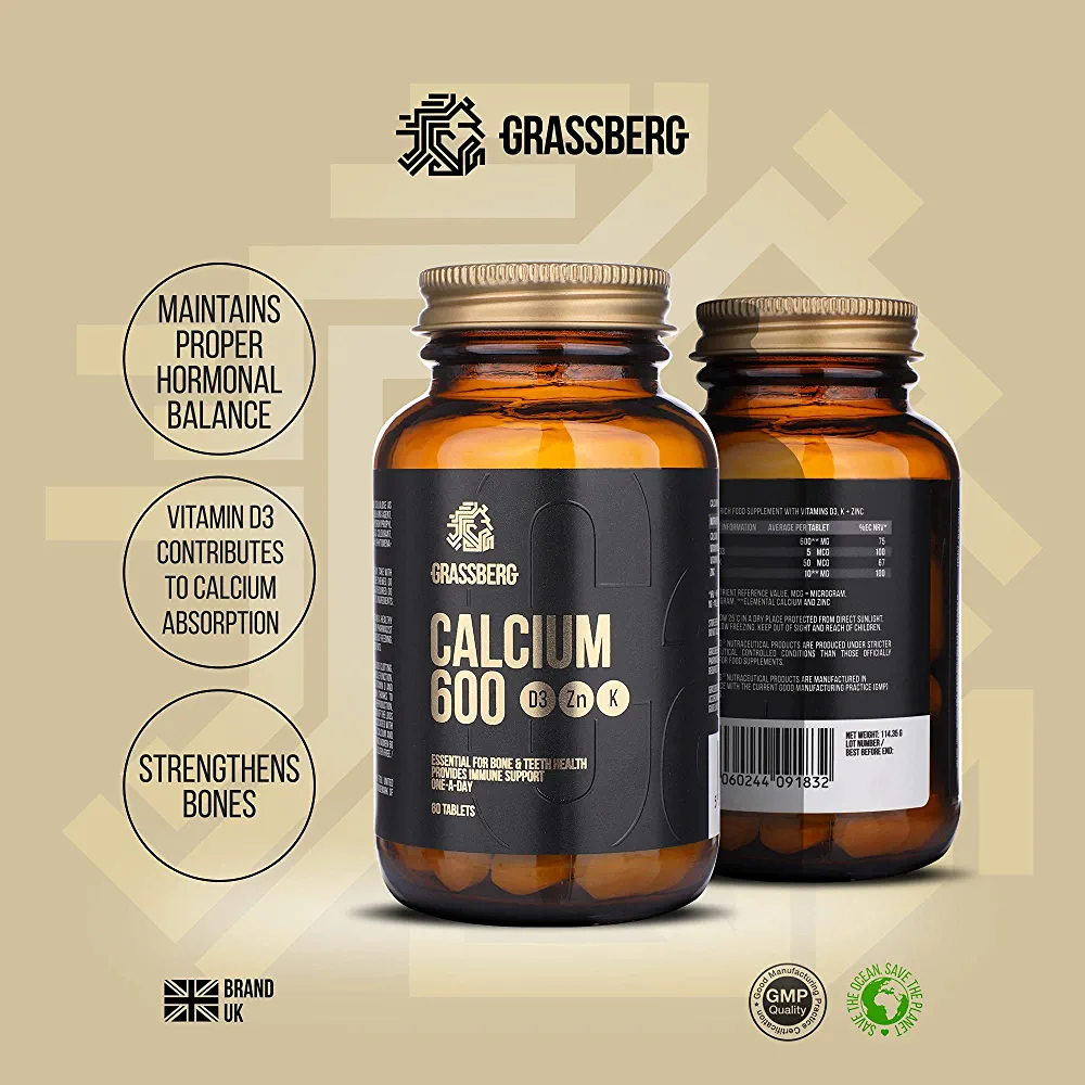 | nameOriginal | GRASSBERG Calcium 600mg Supplements with Vitamin D3, Zinc, Vitamin K – 90 Tablets |
