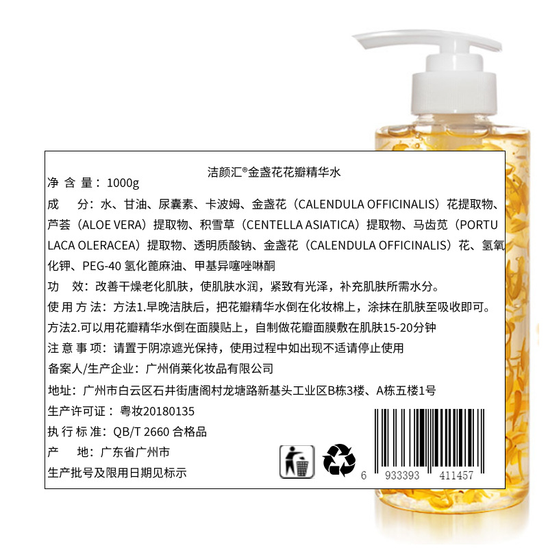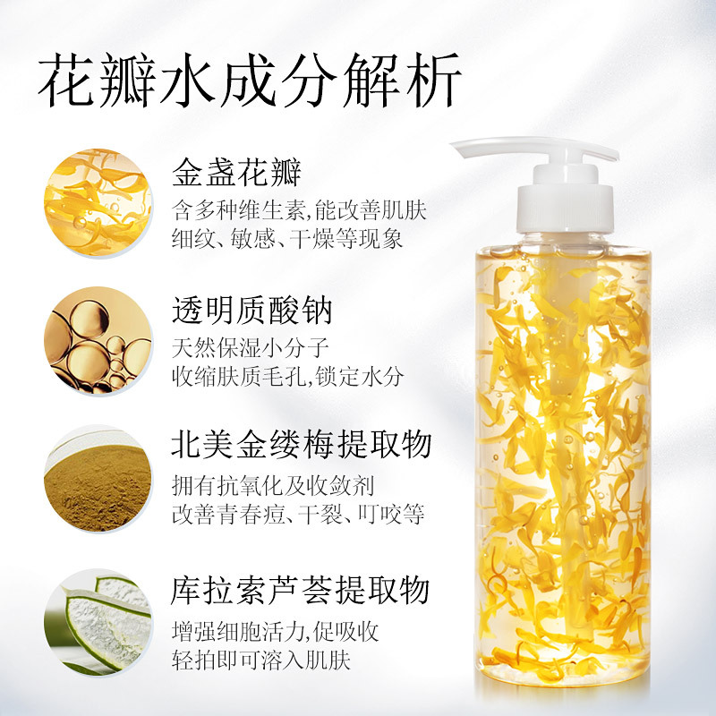 | nameOriginal | Calendula Petal Essence Water Shrink Pore Hydrating Soothing Nourishing Petal Toner Cosmetics Wholesale |