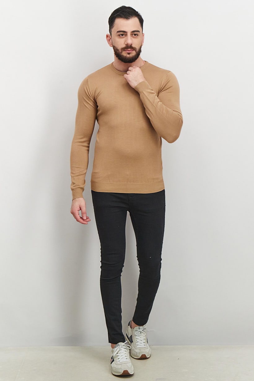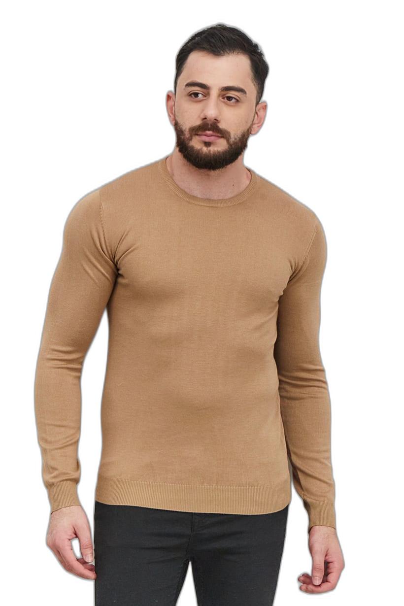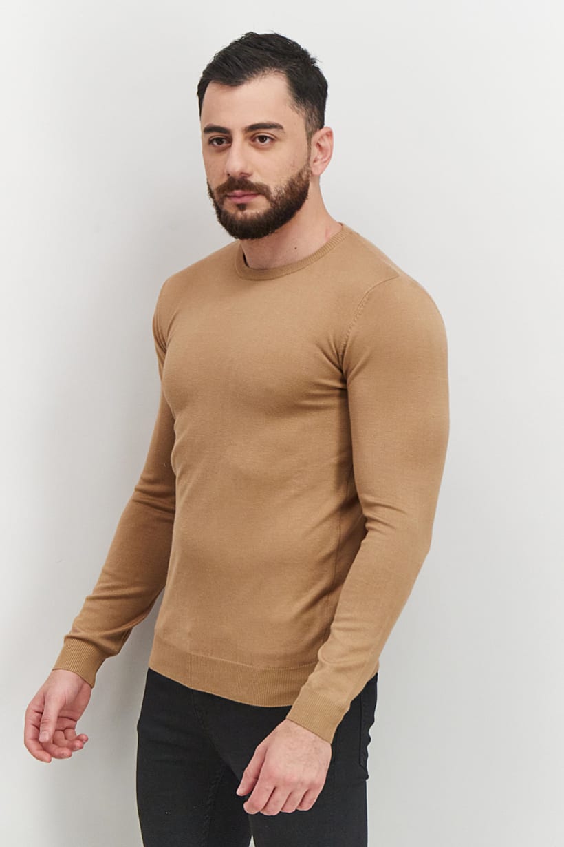 Camel Textured Men’s Crew Neck Sweatshirt with Long Sleeves.