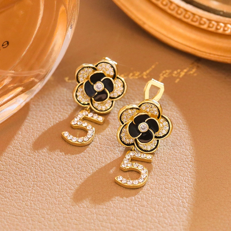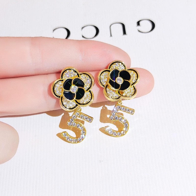 | nameOriginal | Camellia ear clip without piercing women's small fragrant earrings zircon digital earrings 2024 new summer luxury earrings |