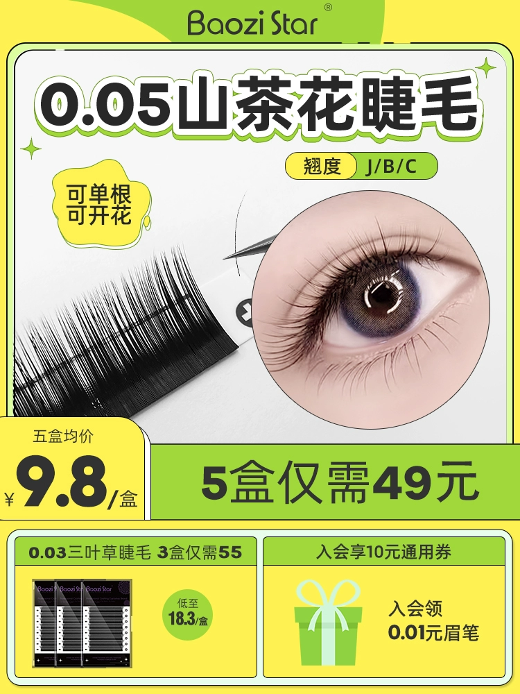 Camellia Eyelash Grafting and Mink Hair Super Soft Flowering False Eyelashes for Women Natural Single Root Soft and Thick