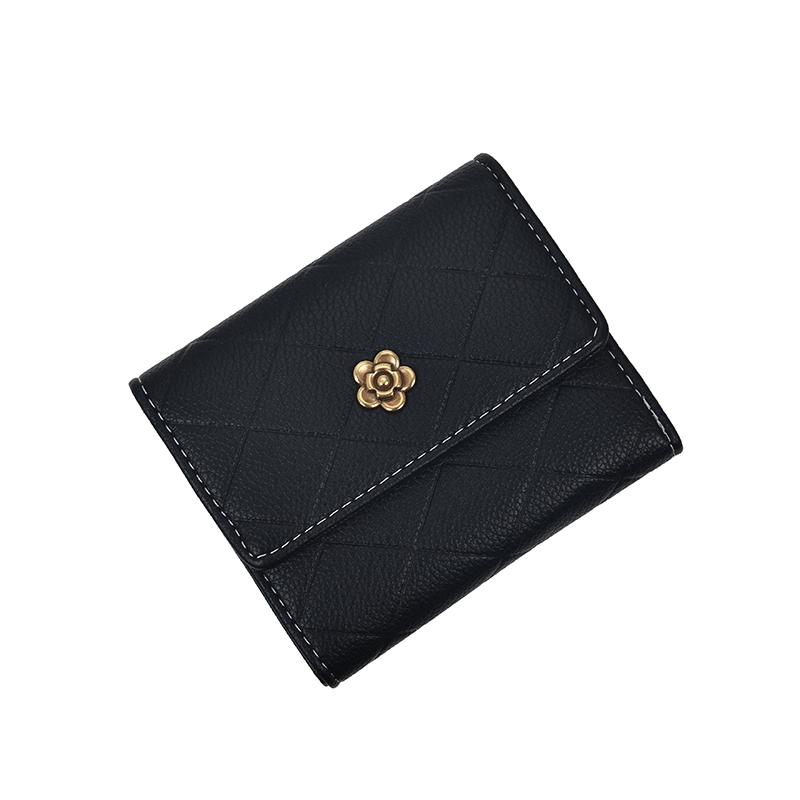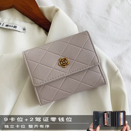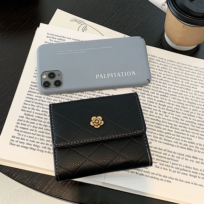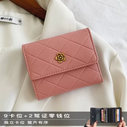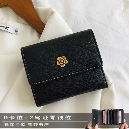 Camellia Small Wallet Women’s Short Anti-Degaussing Buckle Card Holder Student 2024 New Folding Women’s Korean Fashion
