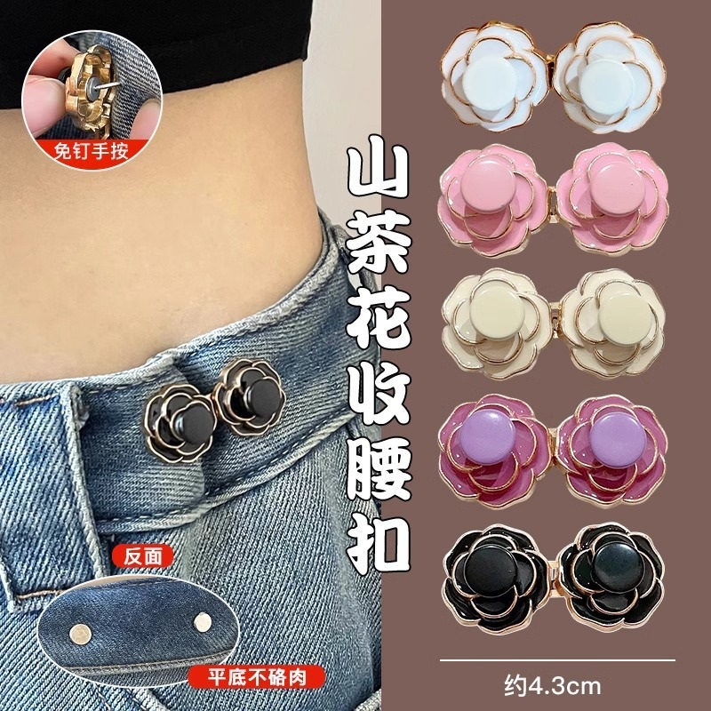 Camellia Waist Buckle Flat Bottom No Meat Tightening Artifact Jeans Waist Large Change Small Fixed Adjustable Buttons