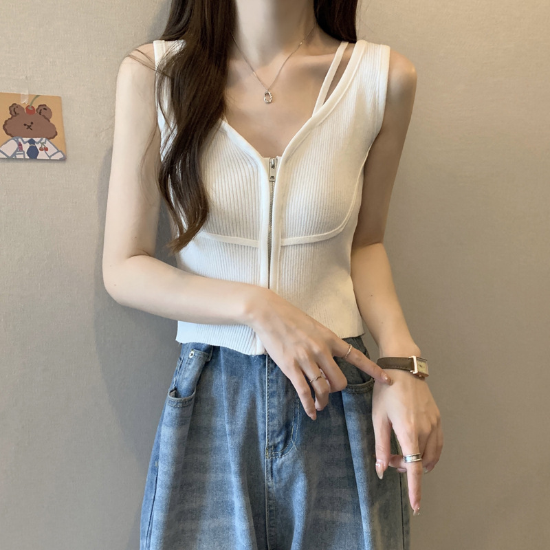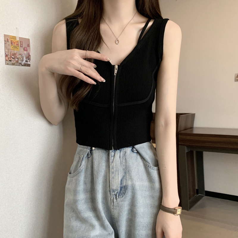 | nameOriginal | Camisole Summer 2024 New Women's Clothing Chic Foreign Style Inner and Outer Wear Niche Zipper Short Base Top |