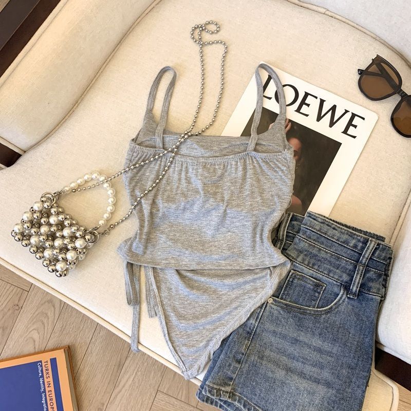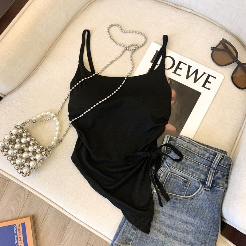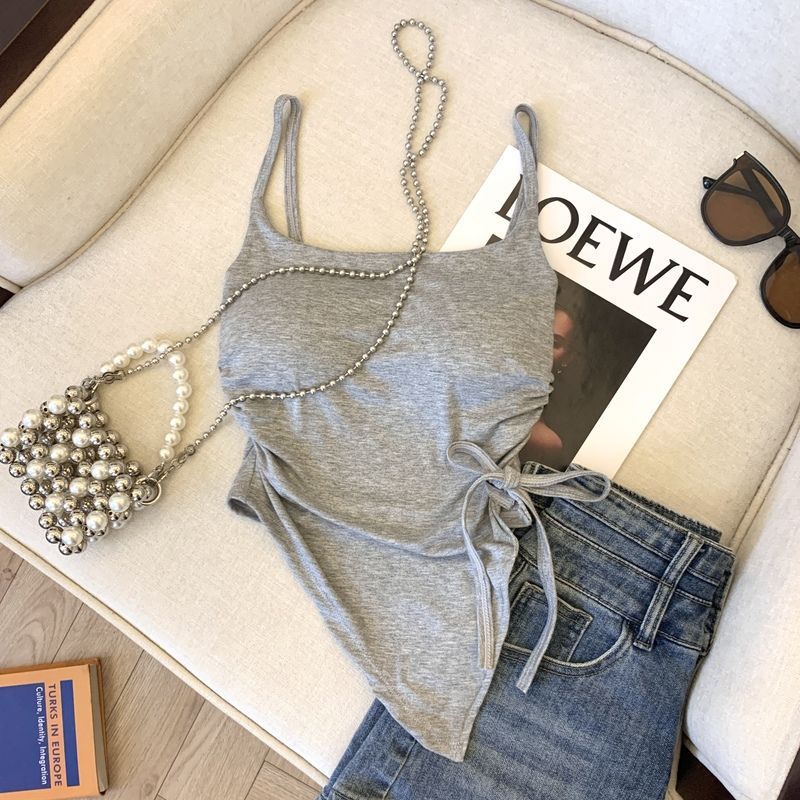 | nameOriginal | Camisole Vest Women's 2024 New Spring and Summer Sweet Spice Girl Drawstring Short Irregular Outer Wear Top with Chest Pad |