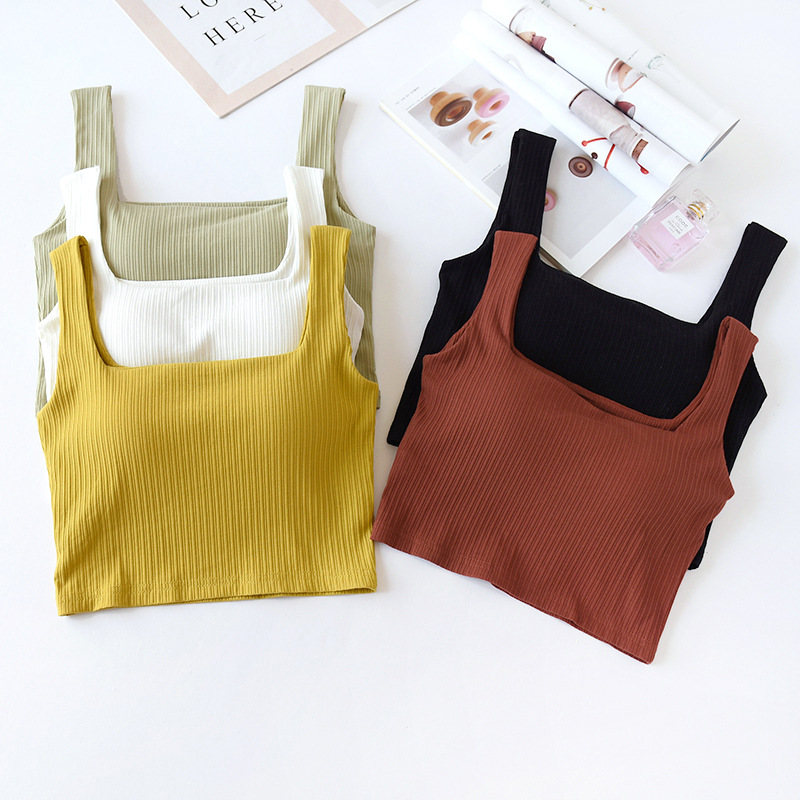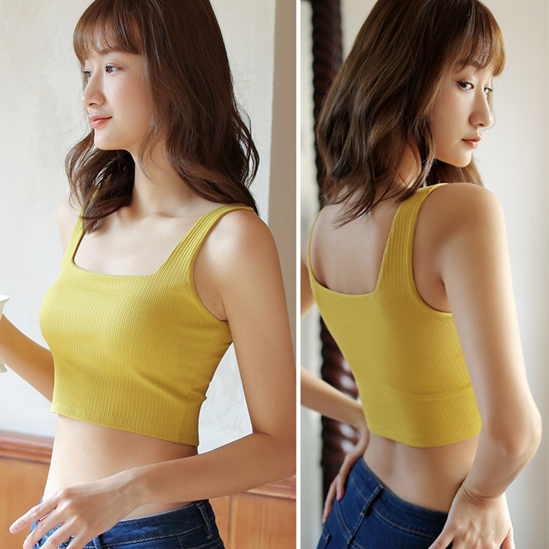 | nameOriginal | Camisole with chest pad camisole bra cup integrated high waist square collar underwear inner and outer wear short top for women |