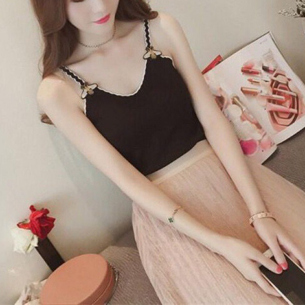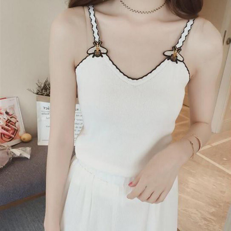 Camisole Women’s Summer New Slim-fit Vest Sexy Inner Student Black Vest Base Knitted White Top