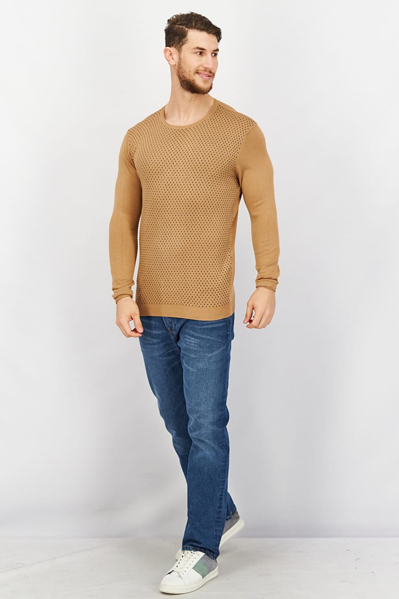 | nameOriginal | Men Crew Neck Textured Print Long Sleeves Sweatshirt, Cammello |
