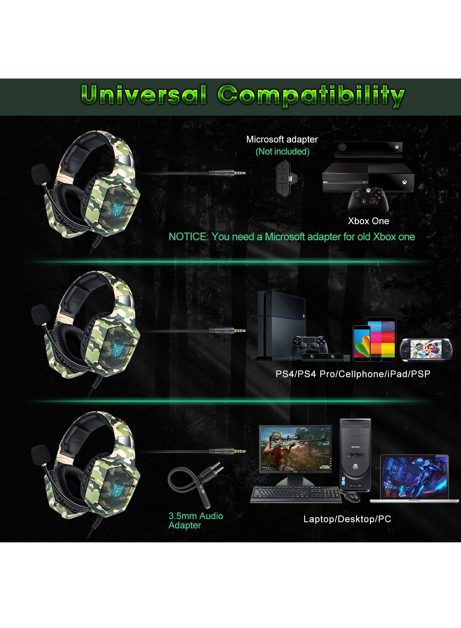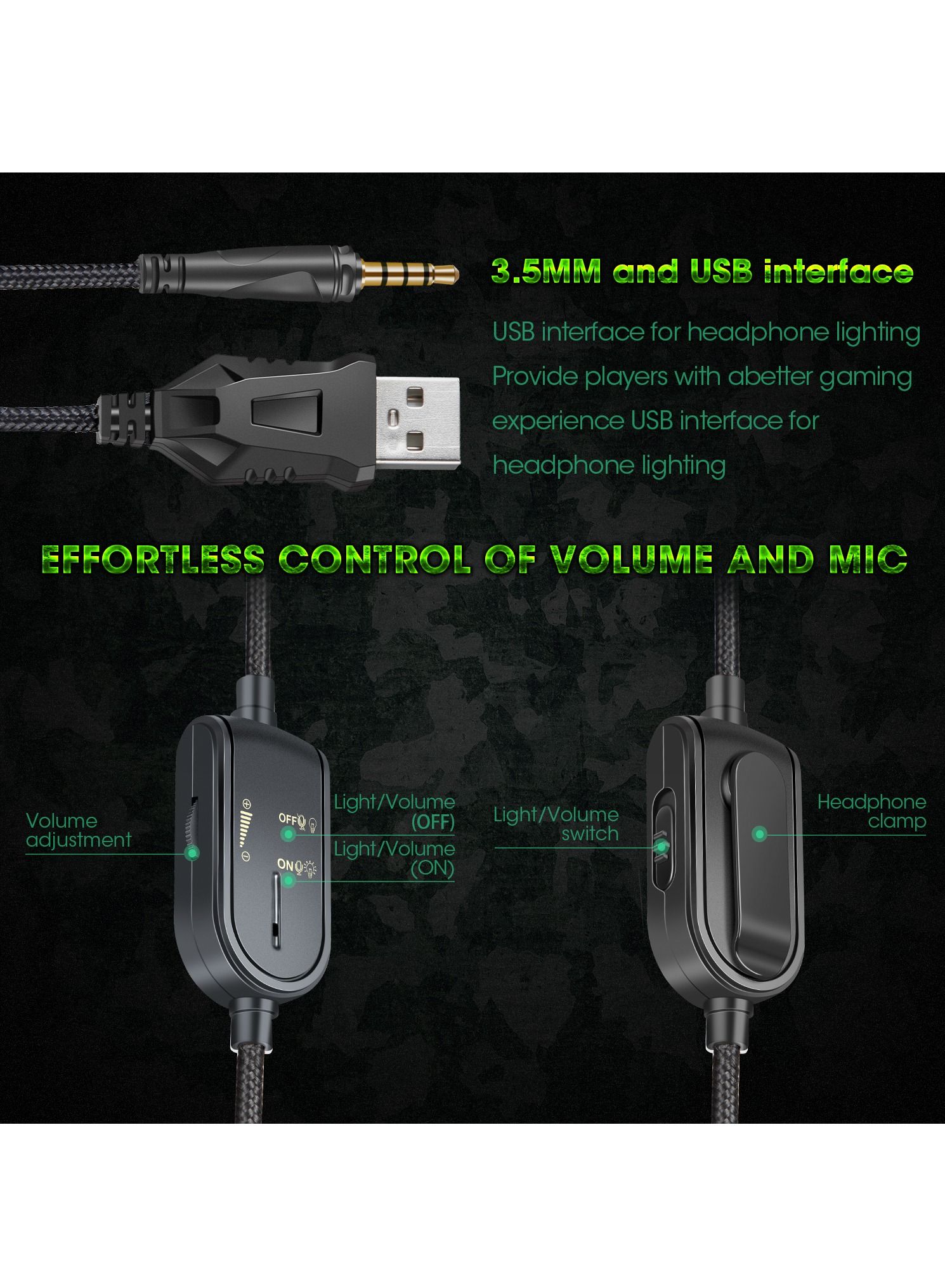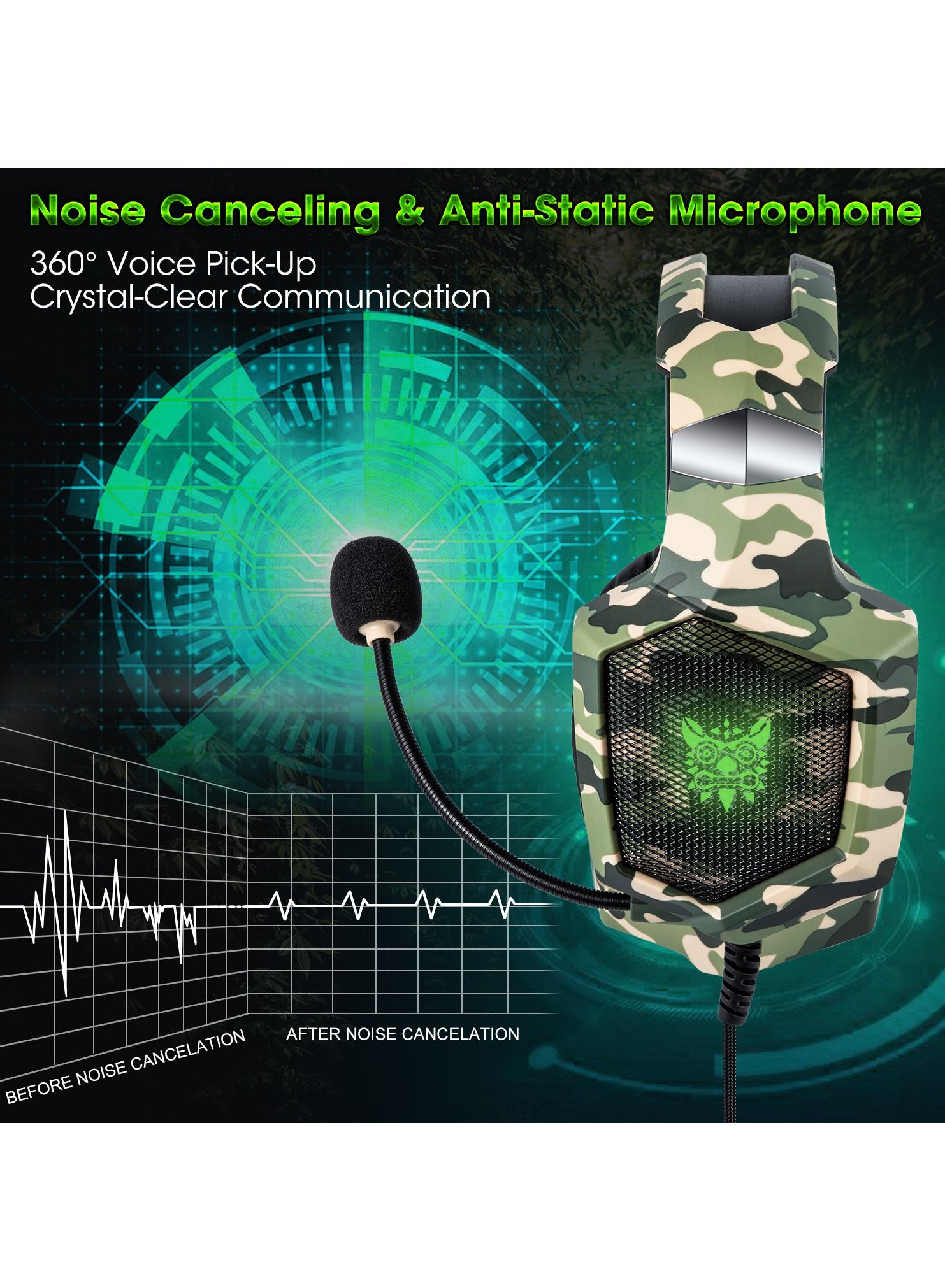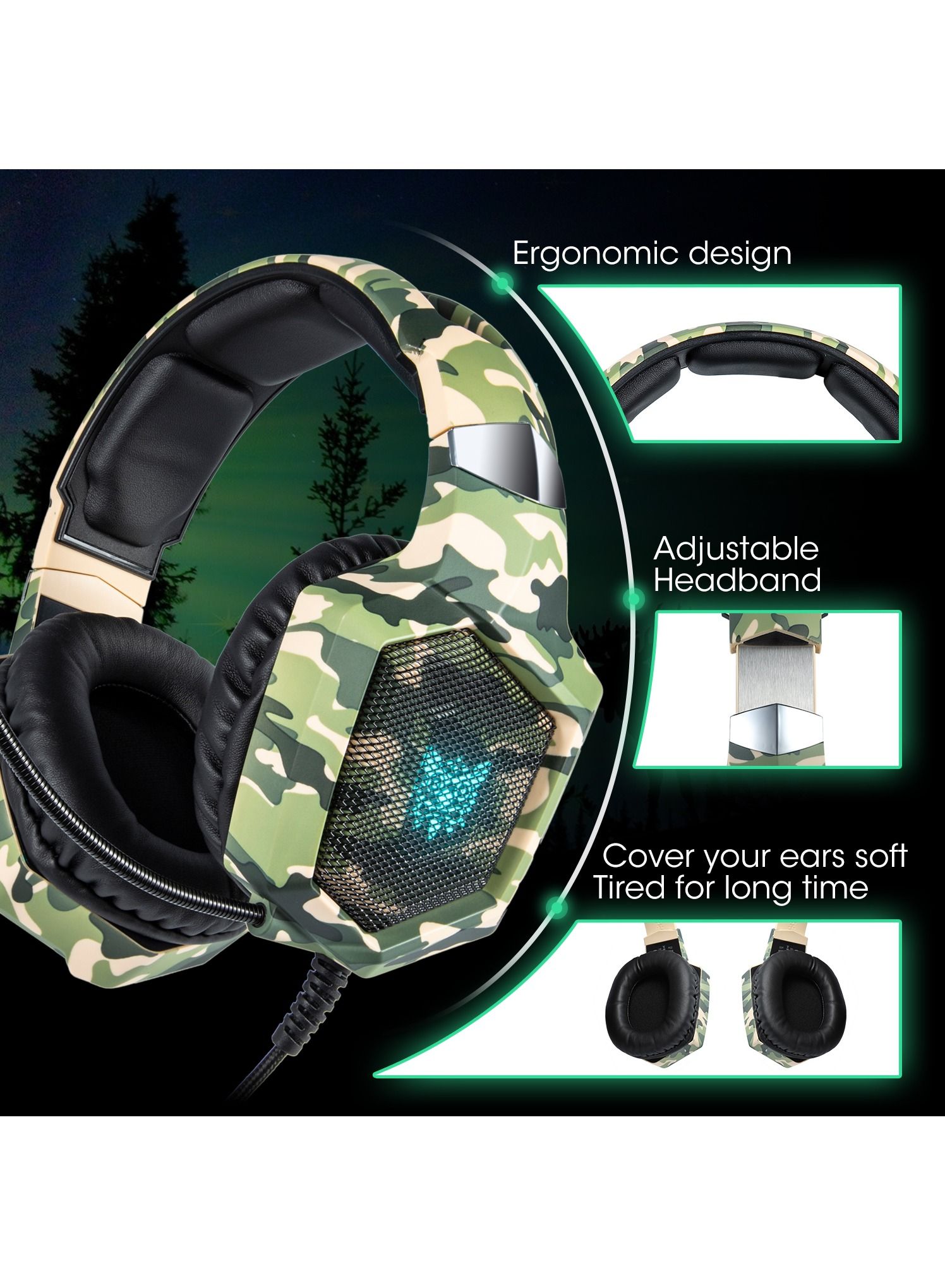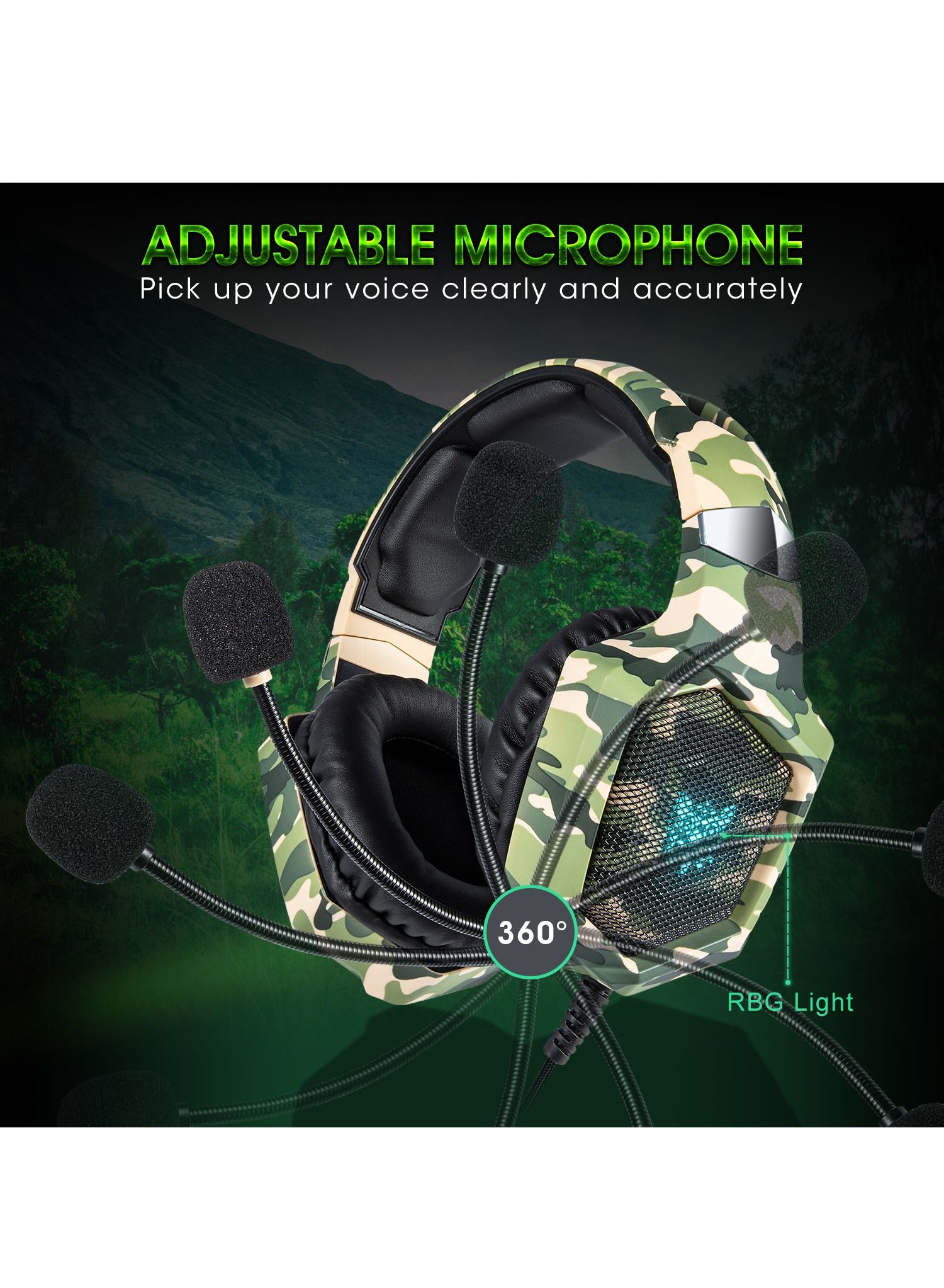 | nameOriginal | Over Ear Bass Stereo Surround Wired Gaming Headphone with Microphone RGB Changing Lights Camouflage |