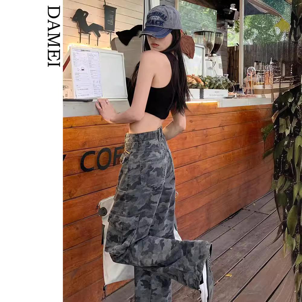 | nameOriginal | Camouflage overalls women's American-style tall Denim pants wide-leg pants camouflage clothing vintage hiphop camouflage pants |