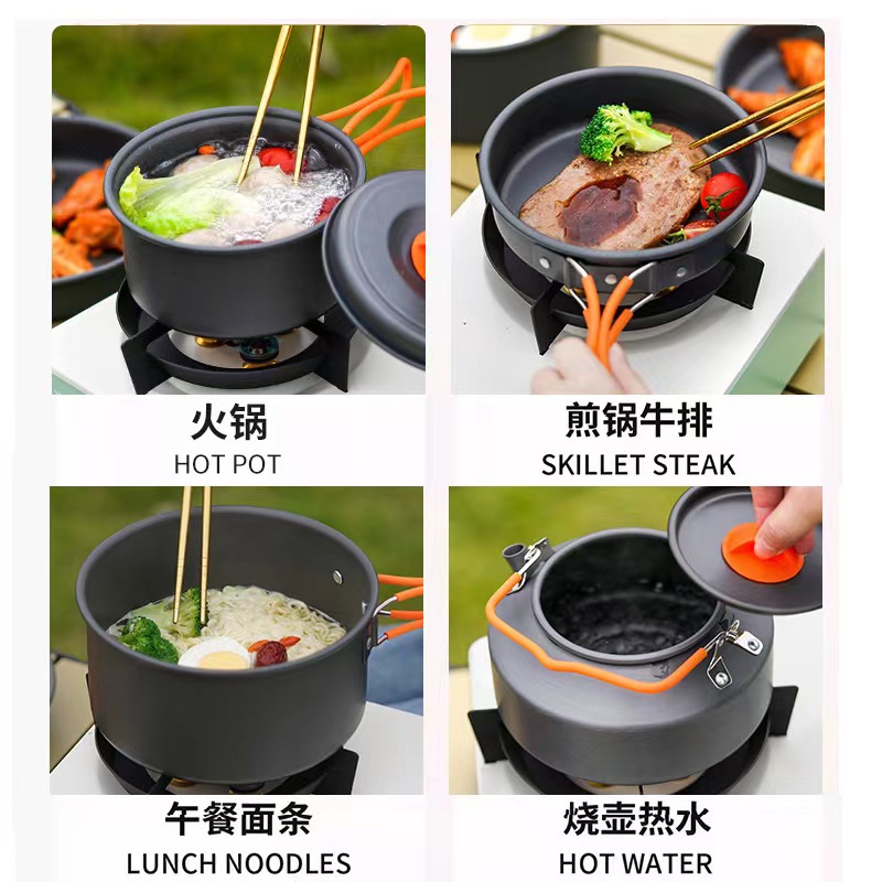| nameOriginal | Camping Supplies Cookware Outdoor Pot Kettle Frying Pan Equipment Portable Field Camping Tableware Set Pot Pot Supplies |