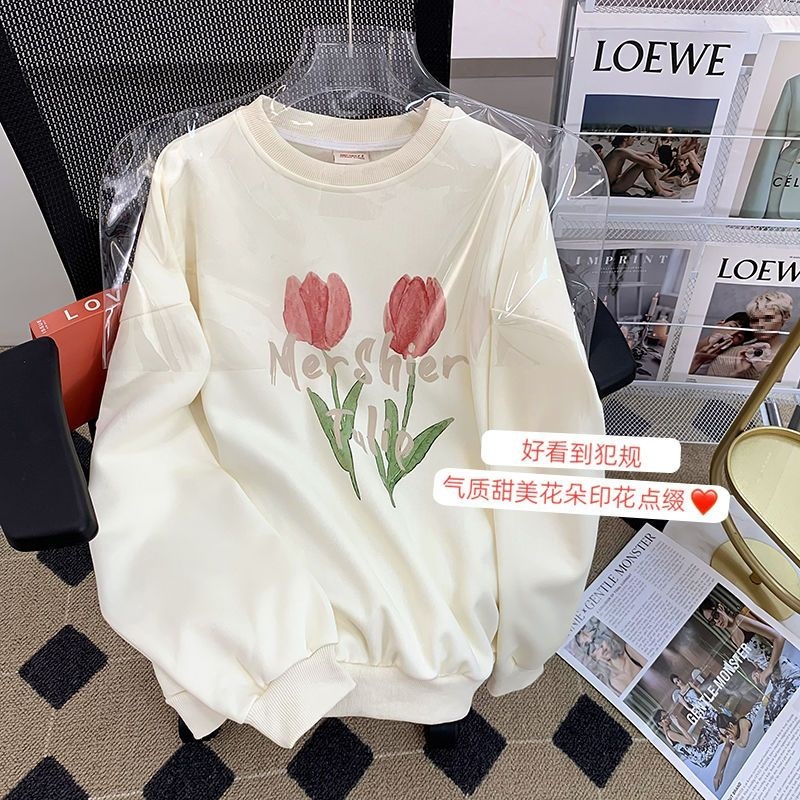 Campus Style Round Neck Sweatshirt Women’s Spring and Autumn Thin 2022 New Student Korean Style Loose Long Sleeve oversize Top
