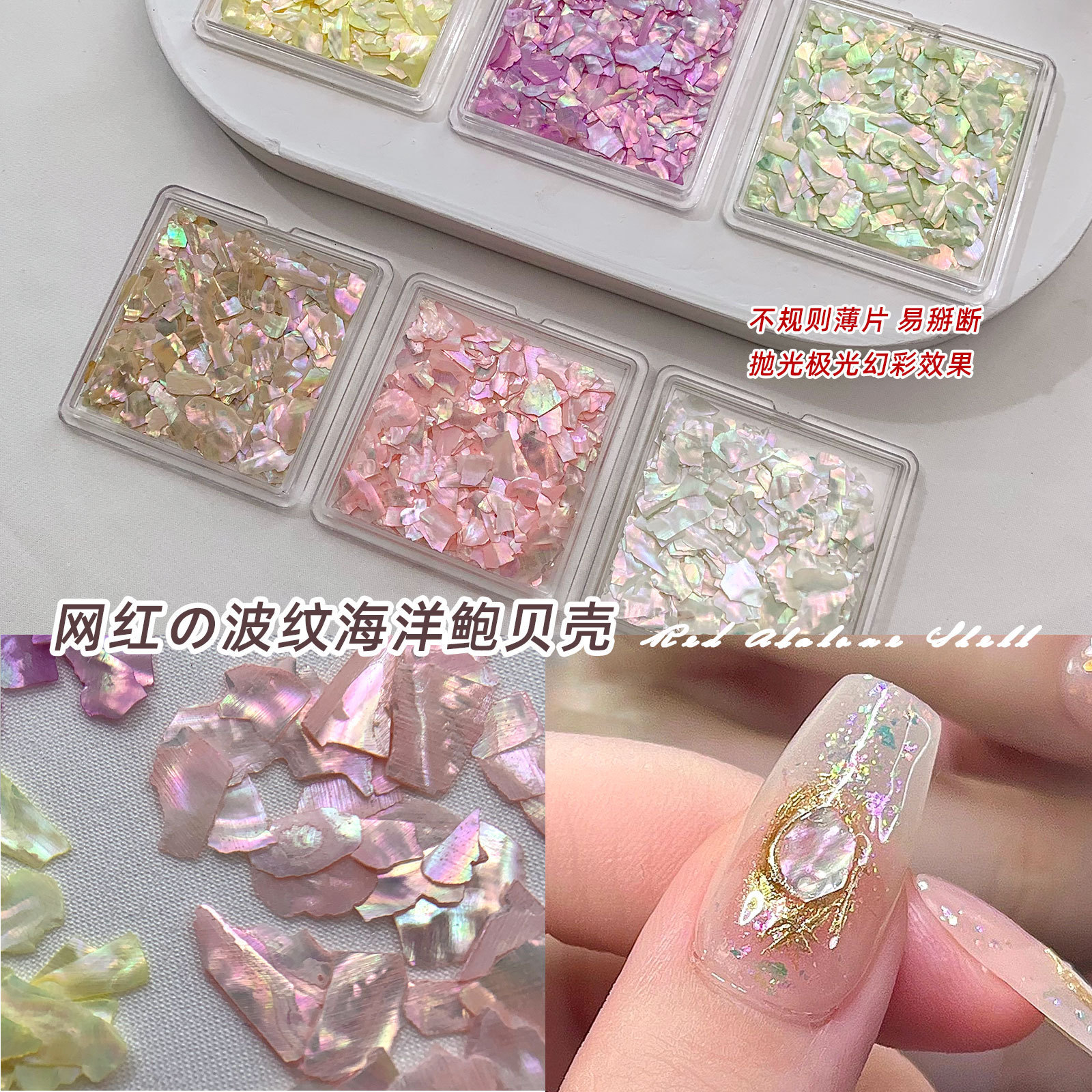 | nameOriginal | Can break off the net red irregular magic color shell nail jewelry new natural imported abalone shell |